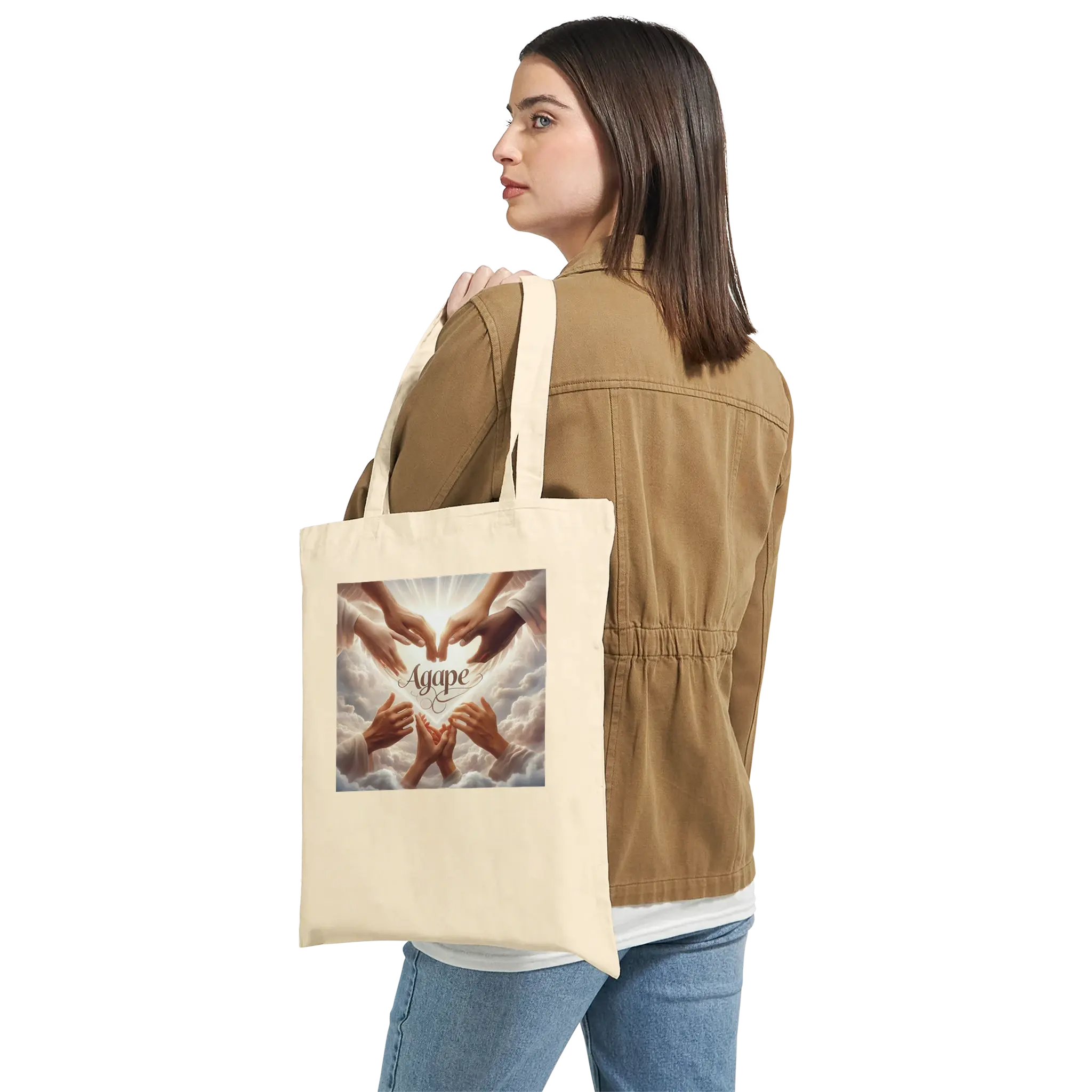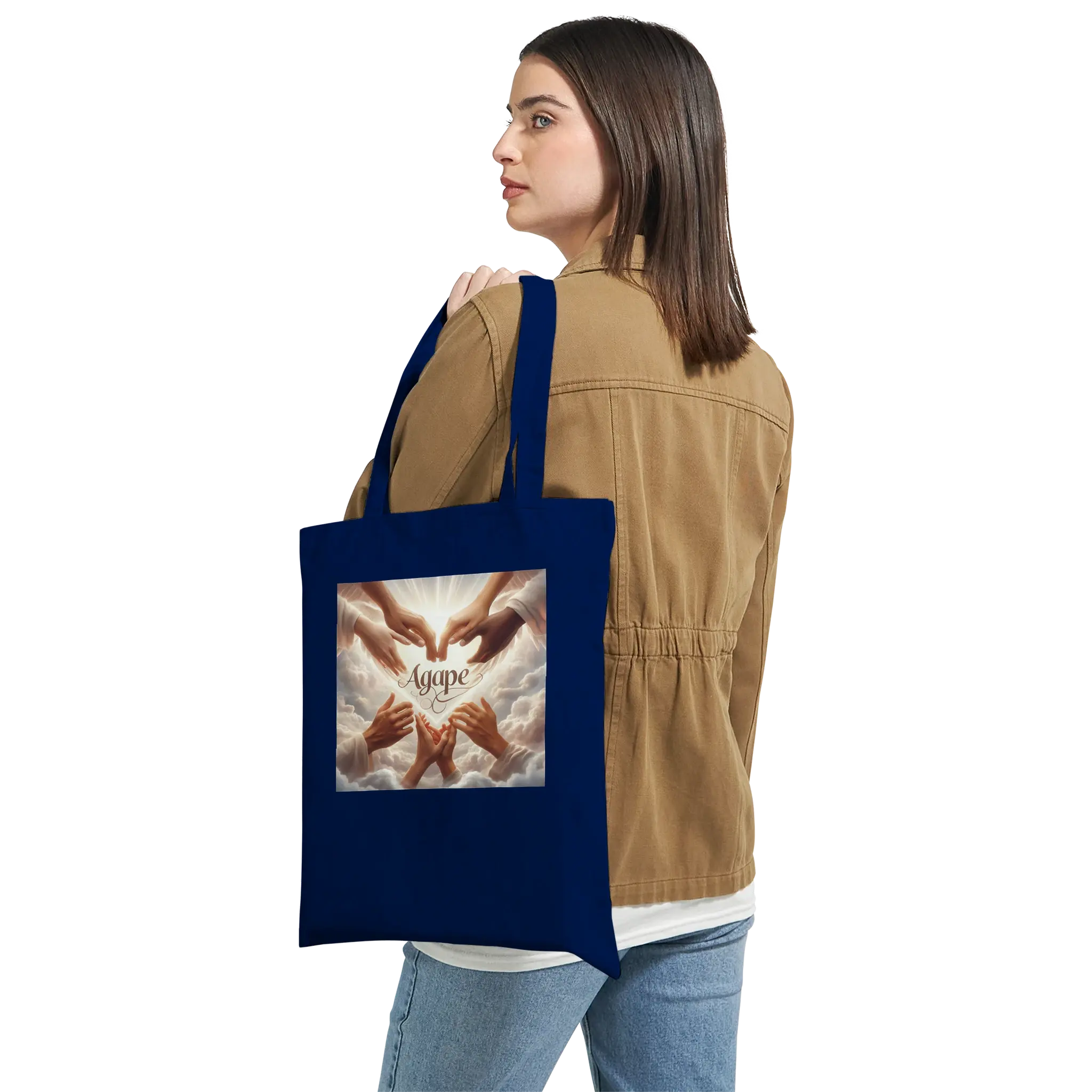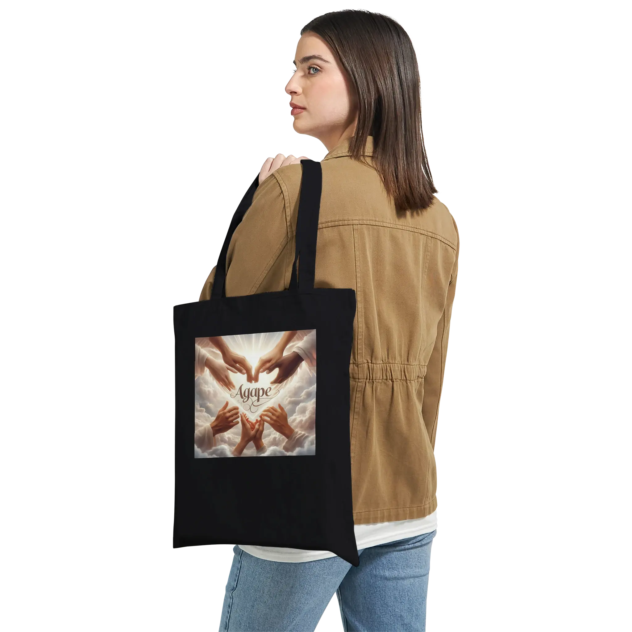 Carry divine love wherever you go. Saintiny Apparel’s “Agape” tote bag features a bold, faith-centered design that celebrates God’s unconditional love with radiant simplicity. Whether you’re heading to class, church, or coffee with friends, this tote is a daily reminder that love begins with Him. Made from durable, eco-conscious materials and styled for modern believers, it’s the perfect blend of purpose and fashion.