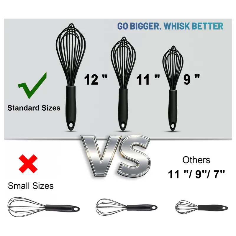 Silicone Balloon Whisk for Non-Stick Cookware, Heat Resistant Kitchen Whisk for Whisking, Cooking, Baking, Beating, Frothing, and Stirring, Black