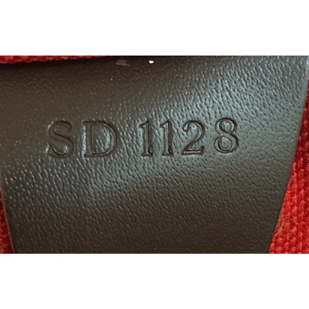 These are professional pictures of the actual item offered by Rebag. Estimated Retail Price: $1,960 Condition: Good. Exterior: heavy corner wear, edge wear, creases, scuffs, minor discoloration | Handles/Straps: scuffs, discoloration, minor cracking | Interior: perfume odor, discoloration, stains, scuffs | Hardware: scratches, tarnished Accessories: No Accessories Measurements: Handle Drop 3", Height 9", Width 13.5", Depth 7", Strap Drop 13-14" Designer: Louis Vuitton Model: Speedy Bandouliere Bag Damier 35 Exterior Material: Canvas Coated Exterior Color: Brown Interior Material: Fabric Interior Color: Red Hardware Color: Gold Brand Code: SD1128 Item Number: 409165/1