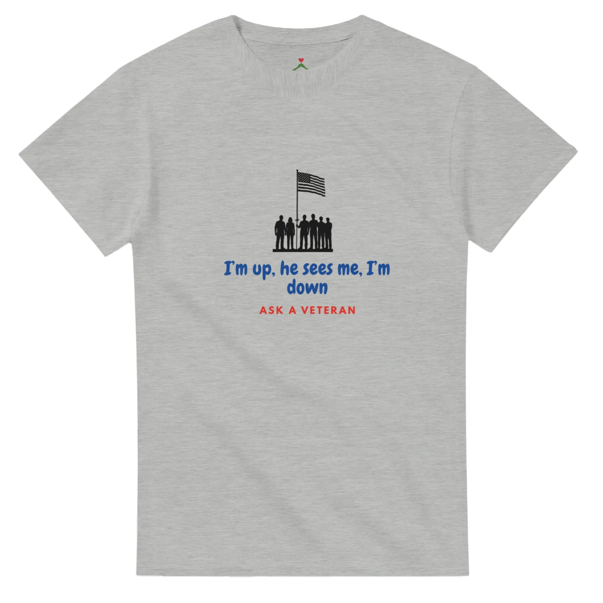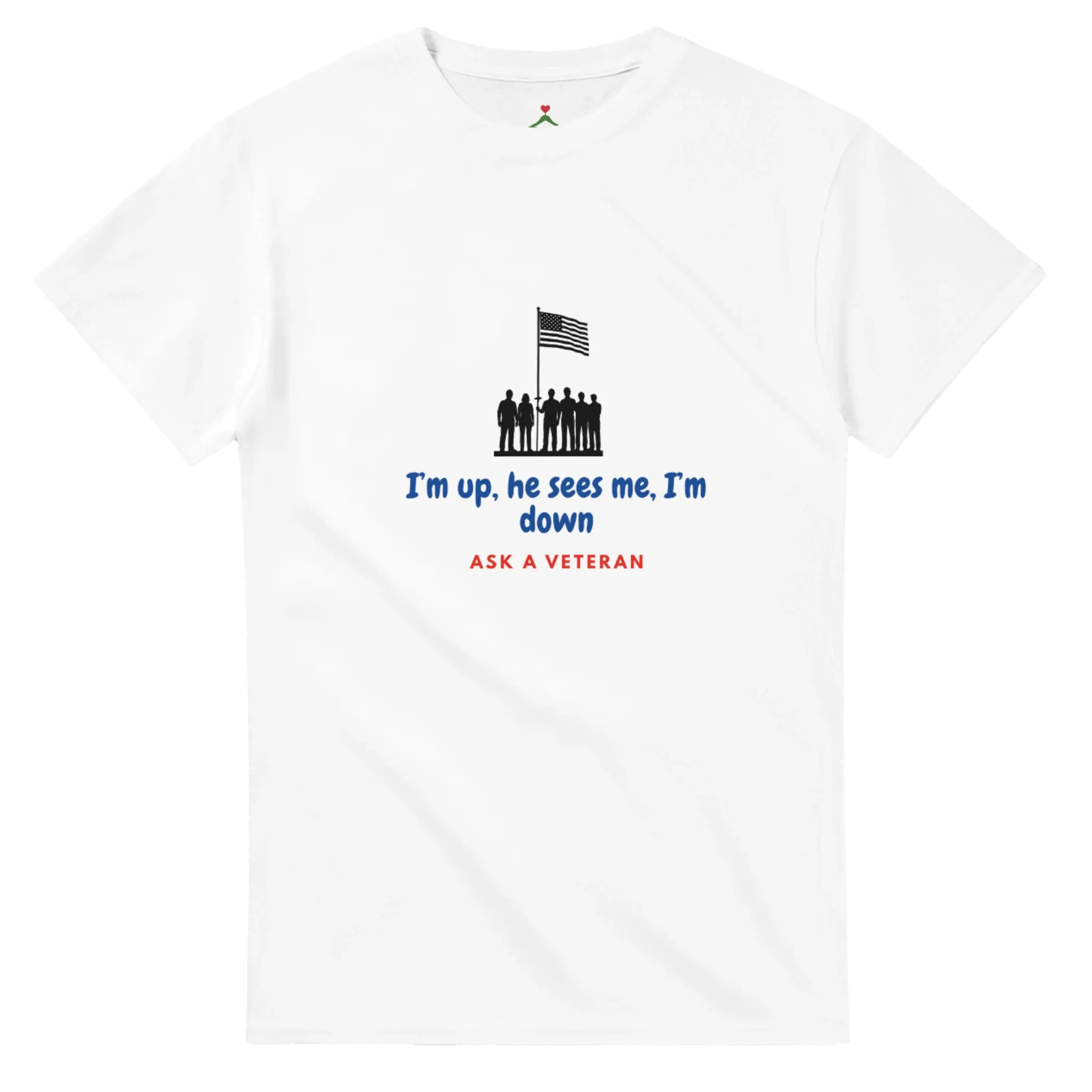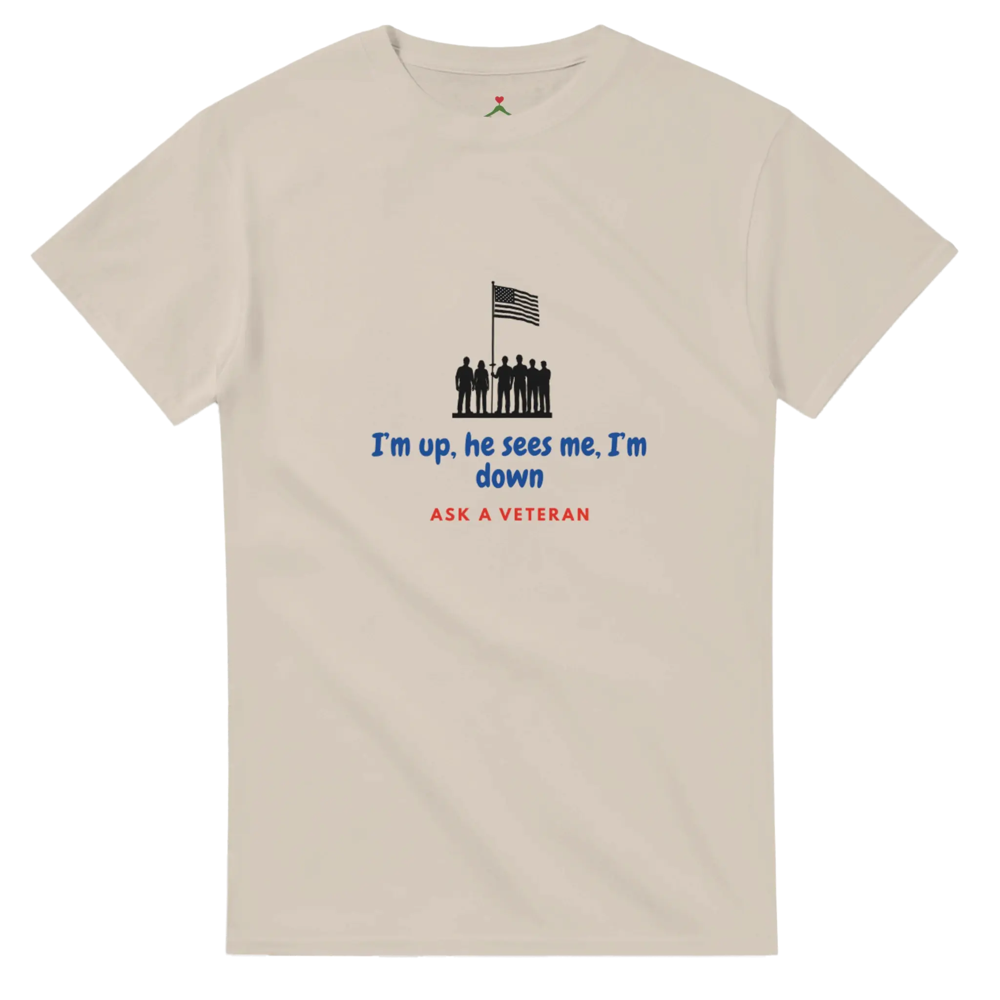 Stand in the legacy of grit, discipline, and battlefield wisdom with this Saintiny Apparel US Veteran Unisex Short Sleeve T‑Shirt featuring the iconic phrase: “I’m up, he sees me, I’m down.”