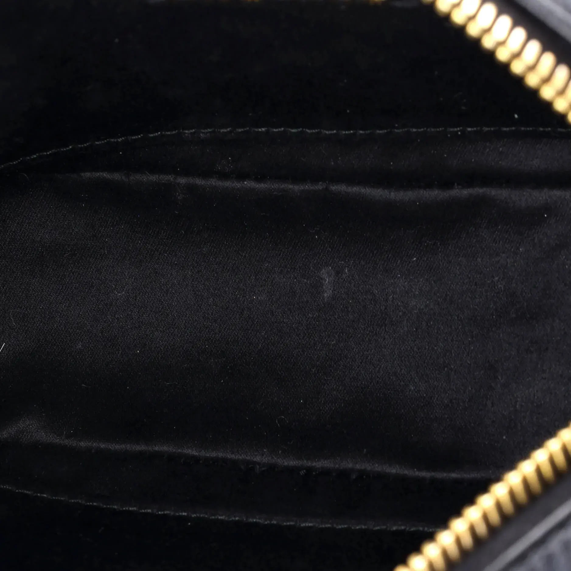 These are professional pictures of the actual item offered by Rebag. Estimated Retail Price: $3,050 Condition: Very good. Exterior: creases | Handles/Straps: creases | Interior: scuffs | Hardware: scratches, tarnished Accessories: Clochette, Lock, Luggage Tag, Keys, With Strap Measurements: Height 5", Width 8", Depth 2.5" Designer: Miu Miu Model: Arcadie Top Handle Bag Matelasse Leather Small Exterior Material: Leather Exterior Color: Black Interior Material: Satin Interior Color: Black Hardware Color: Aged Gold Item Number: 417508/56