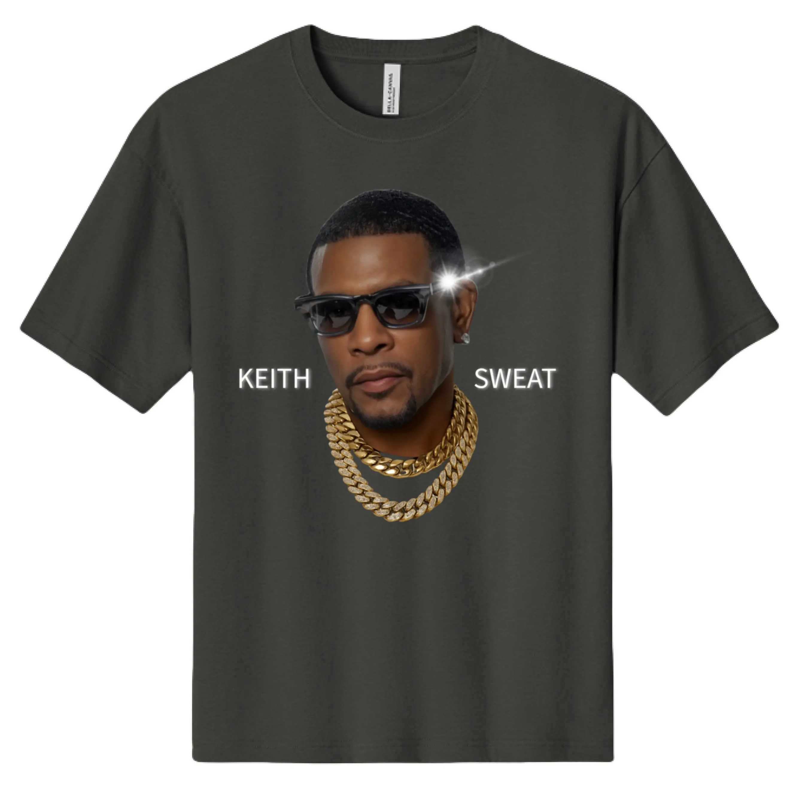 A bold R&B inspired graphic featuring a sleek portrait-style design with “Keith Sweat” text. Clean, iconic, and made to stand out, this piece is perfect for fans of classic R&B and timeless style.