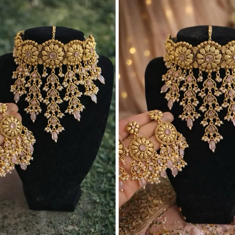 Mint pink waterfalll gold plated set