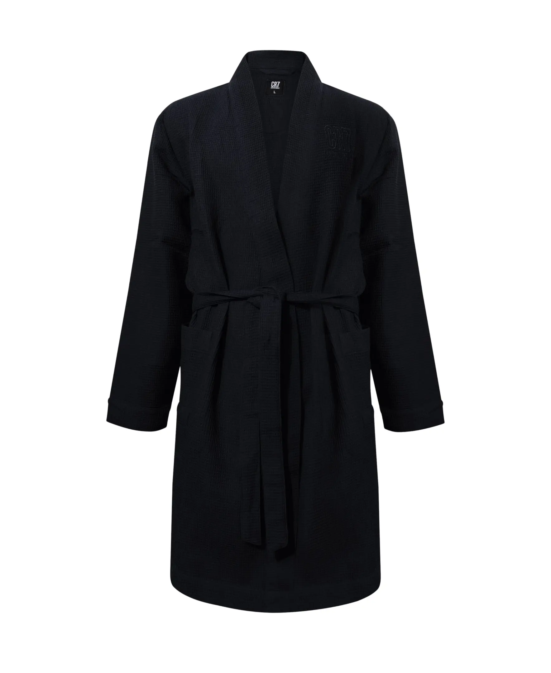 CR7 Men's cotton blend waffle weave bathrobes are great looking and absorbent. Robe features black on black 'CR7' logo on left chest.
