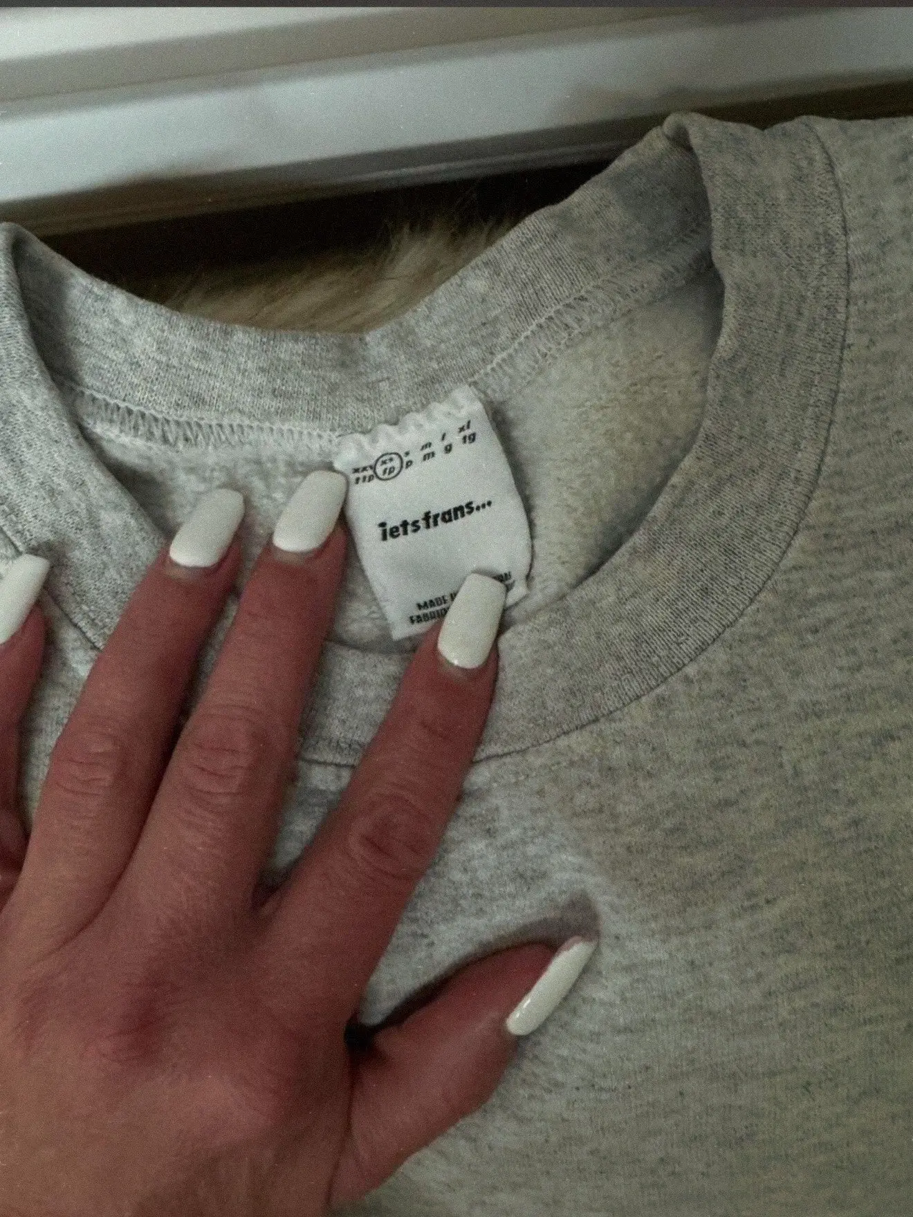·Top: Size XS – Cropped crewneck sweatshirt with minimal embroidered logo