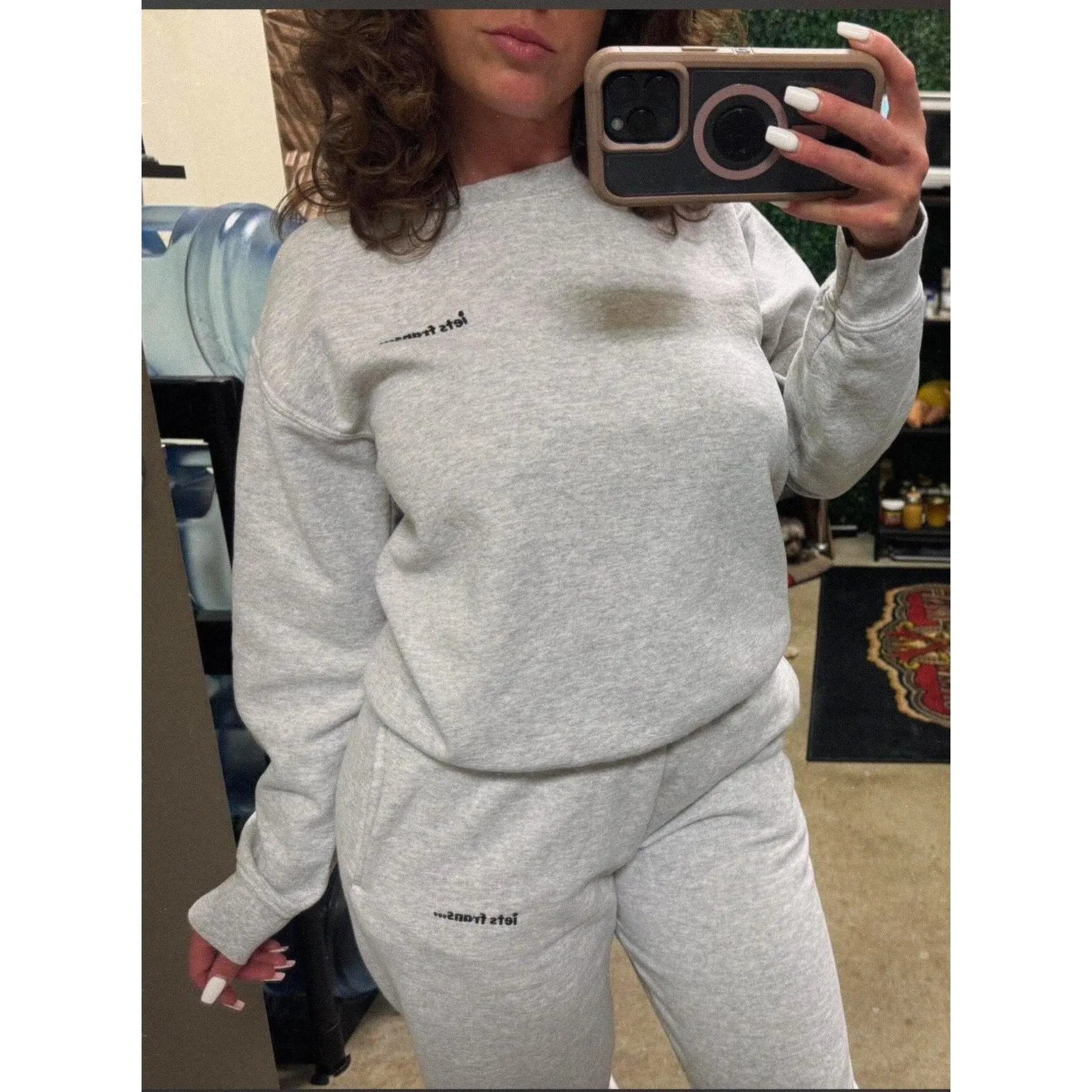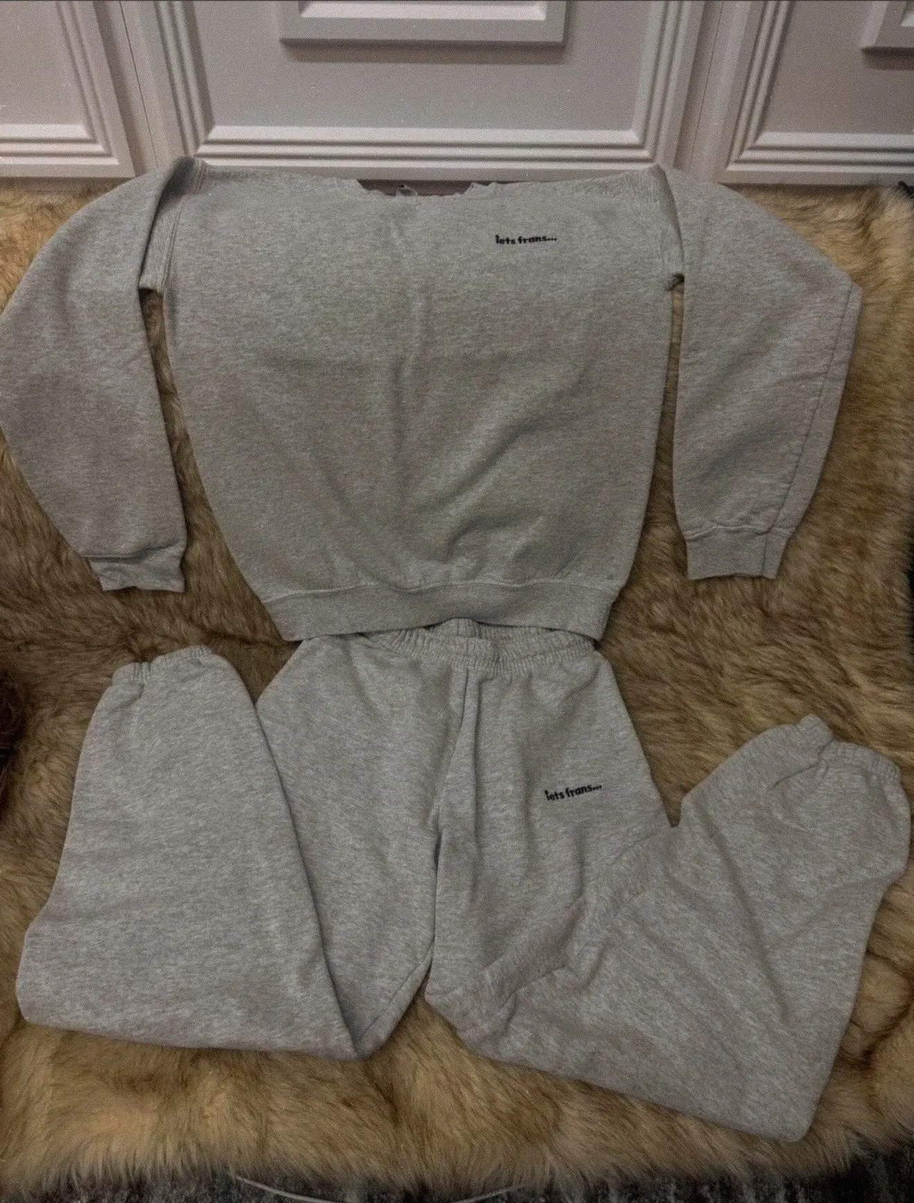 Stay cozy and stylish in this soft grey Ianfrans sweat pant suit. This two-piece matching set includes a cropped crewneck sweatshirt (XS) and relaxed jogger pants (Small), offering a flattering, put-together loungewear look.