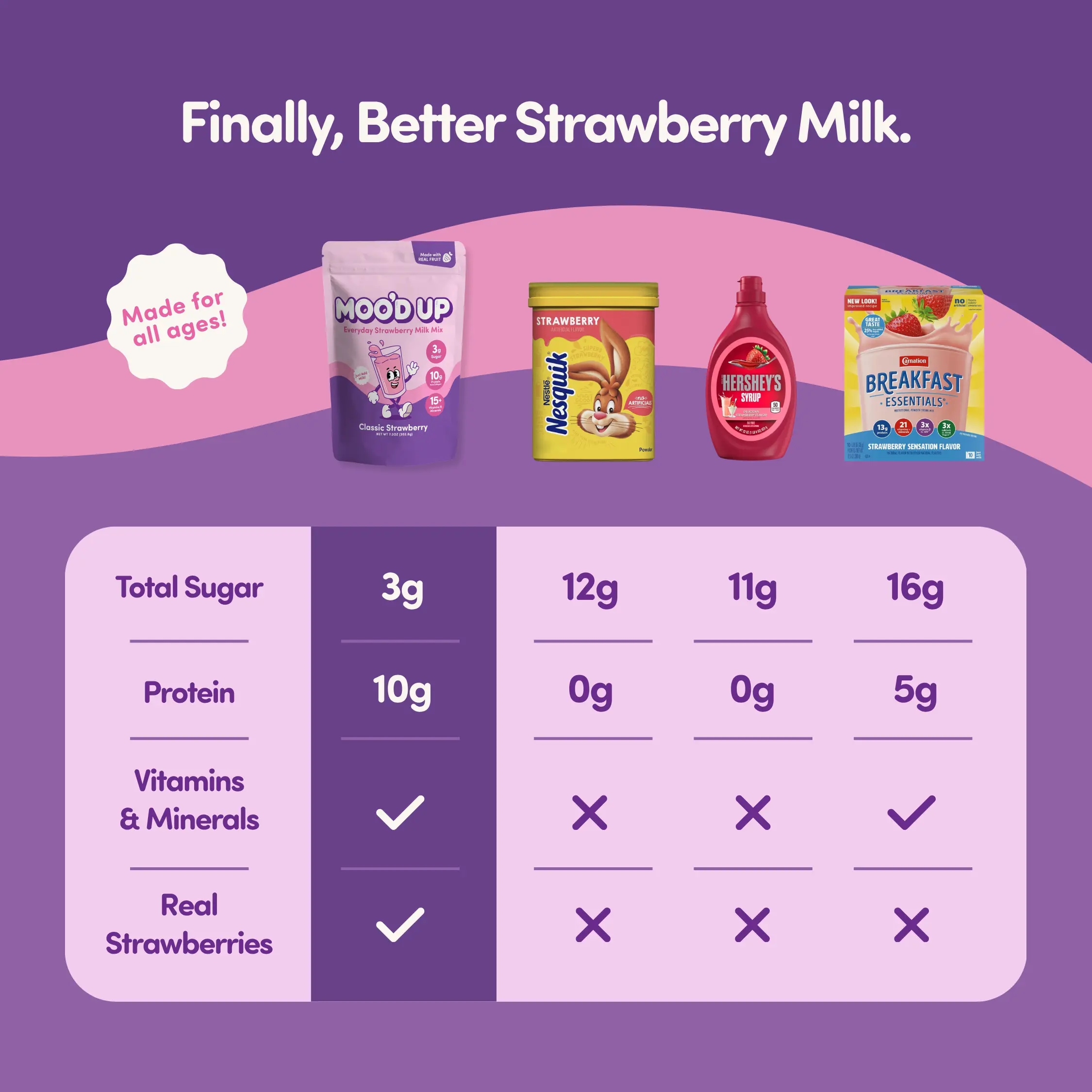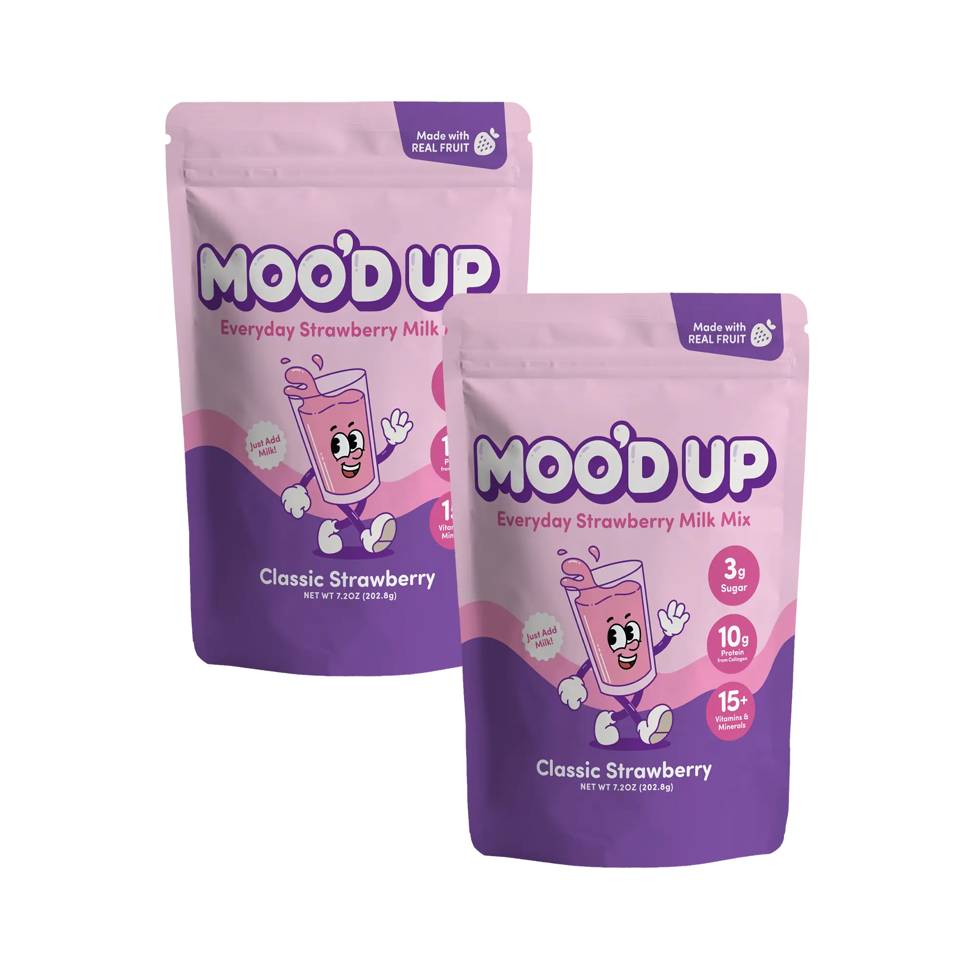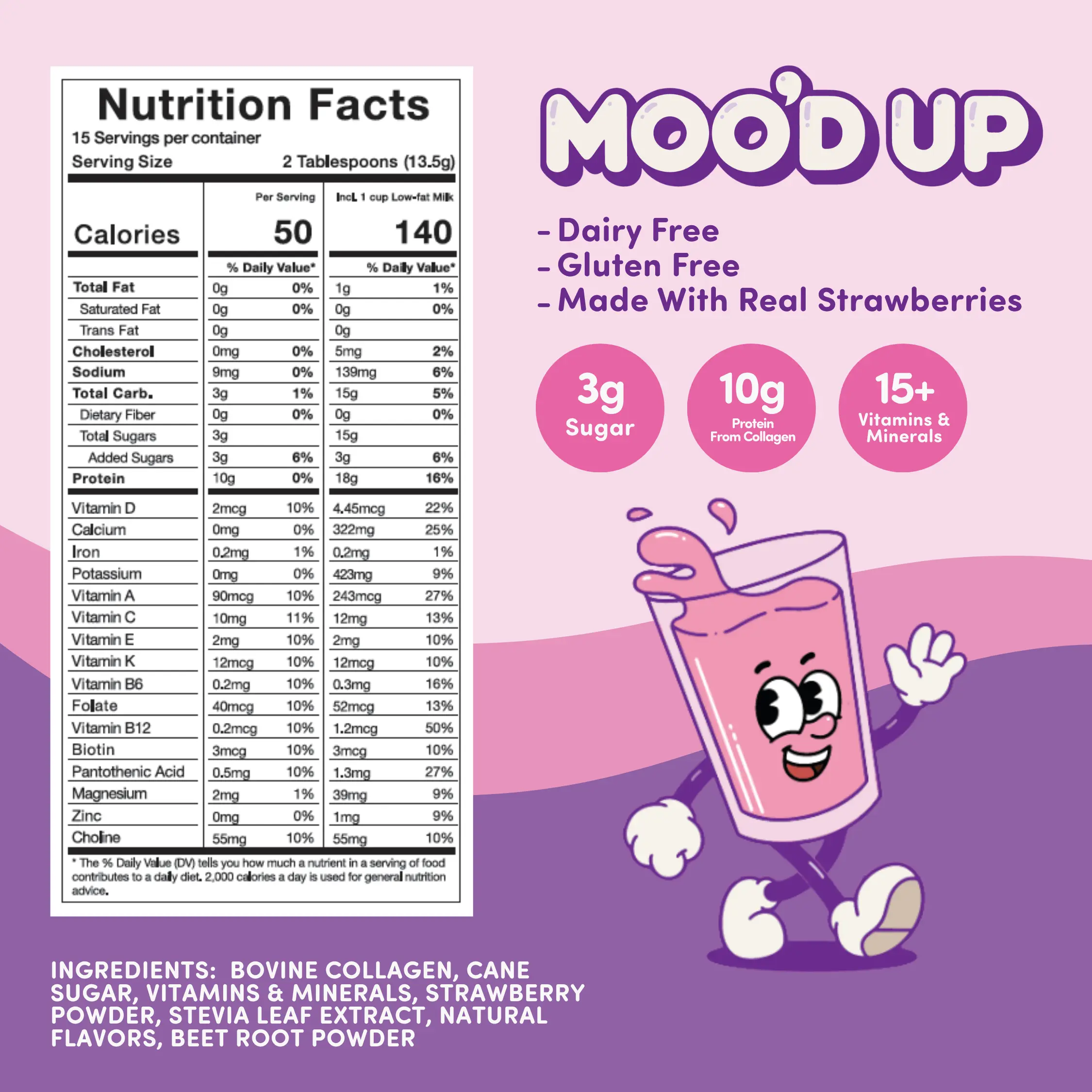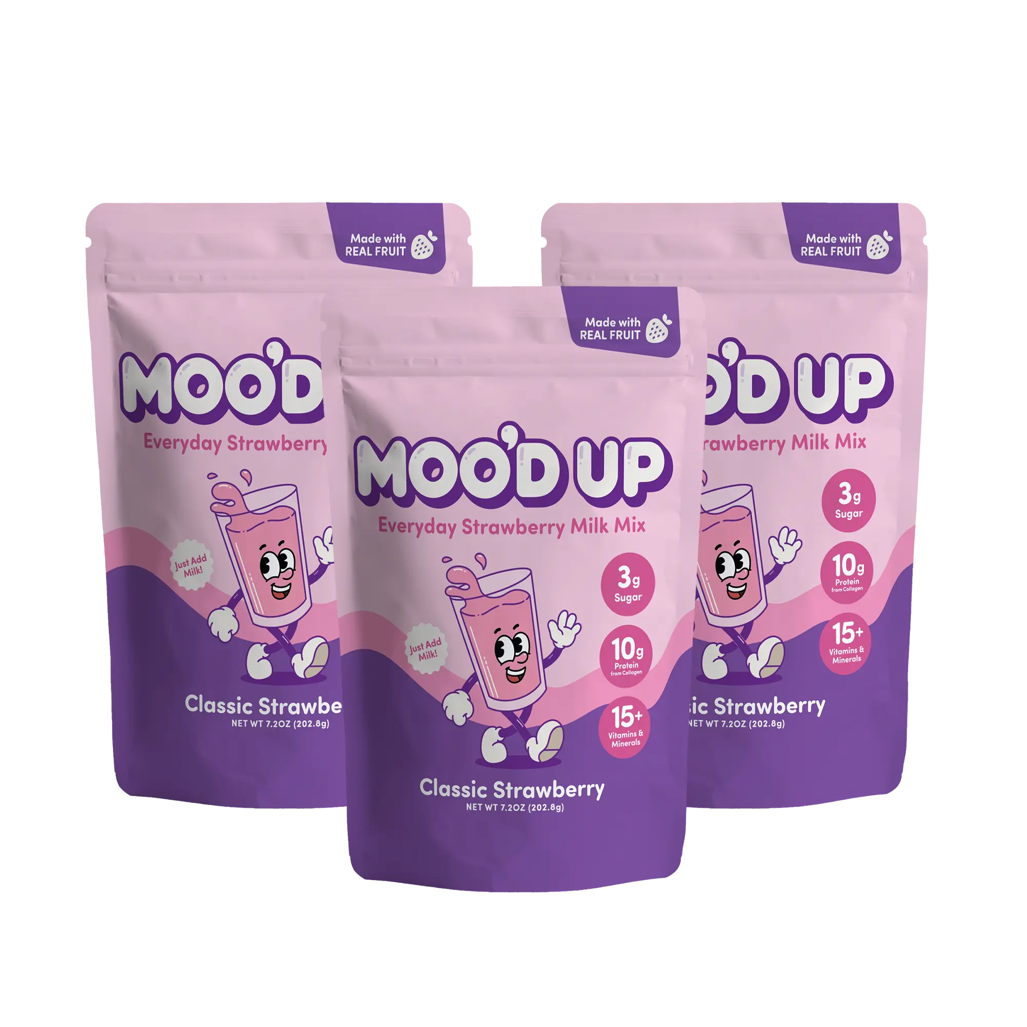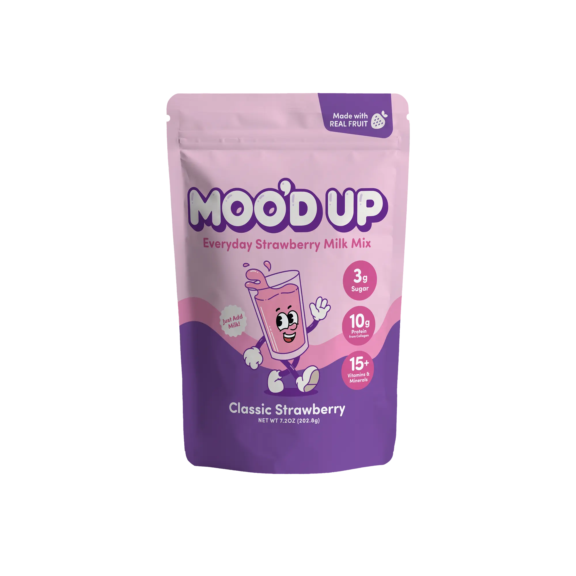 Moo’d Up is the mix that makes the perfect strawberry milk. Dairy-free and made with real strawberry flavor, a boost of protein, and just the right touch of sweetness. It’s the strawberry milk you grew up loving, but without the artificial junk. Simply scoop into your favorite dairy or non-dairy milk, mix it up, and enjoy a creamy glass of strawberry milk anytime!