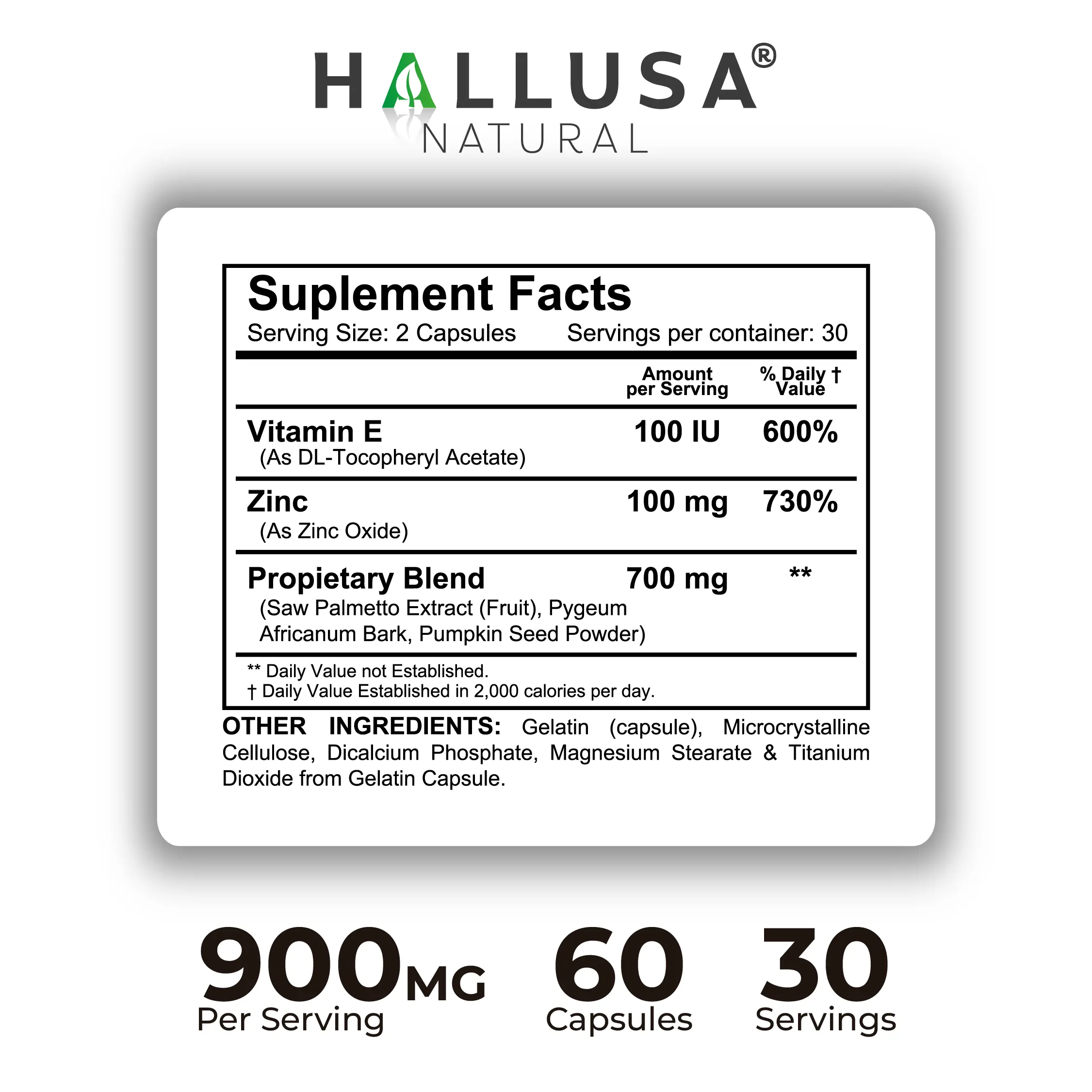 ·Proprietary Blend 700 mg (Saw Palmetto, Pygeum, Pumpkin Seed).