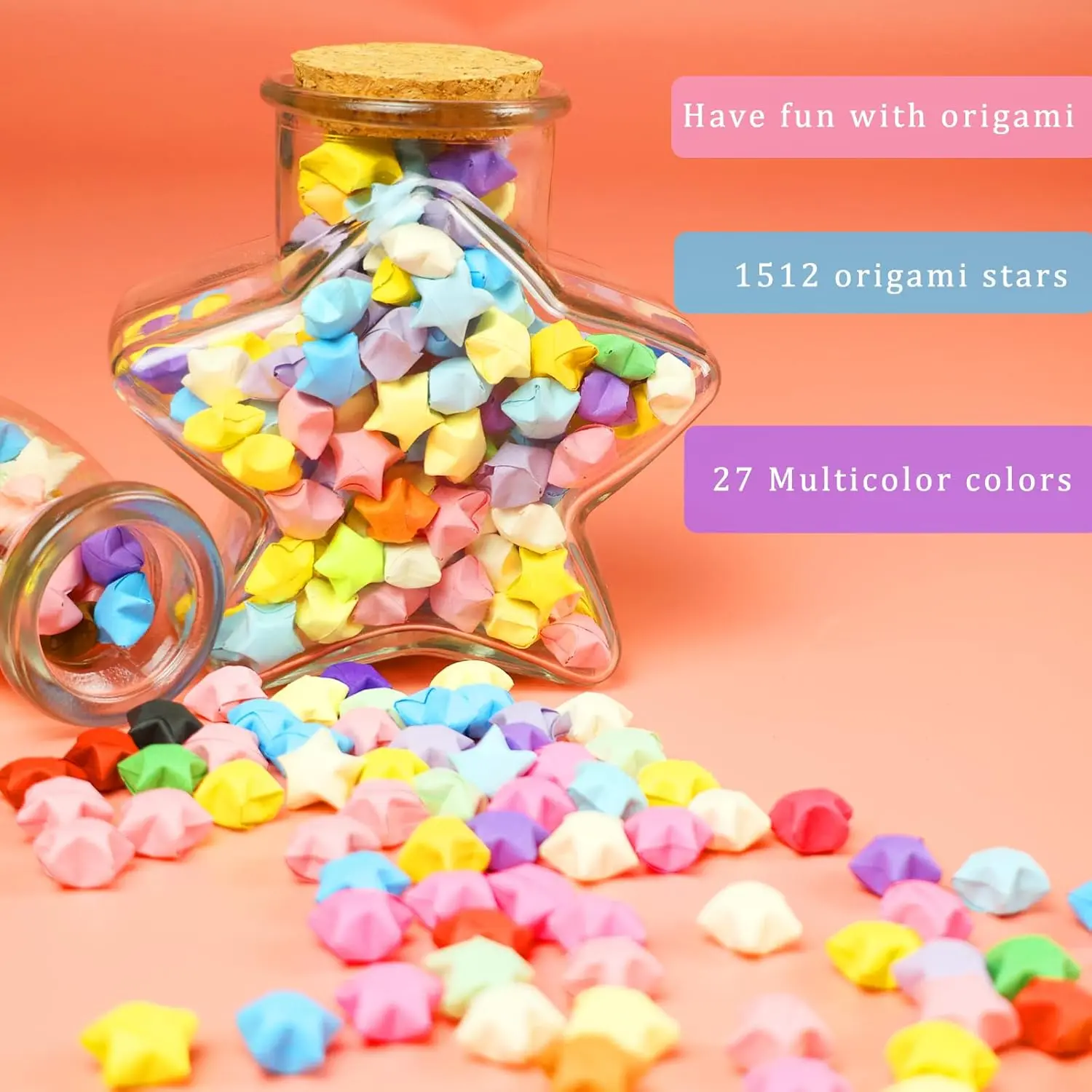 ·Ample quantity and rich colors: There are 1512 sheets of origami star paper strips, in 27 colors and 56 strips of each color,each measuring 9.25in/23.5cm (L) x 0.39in/1cm (W). You can also fold a bouquet of stars and give it to family and friends.This is a great gift for anyone who enjoys doing this wonderful art form