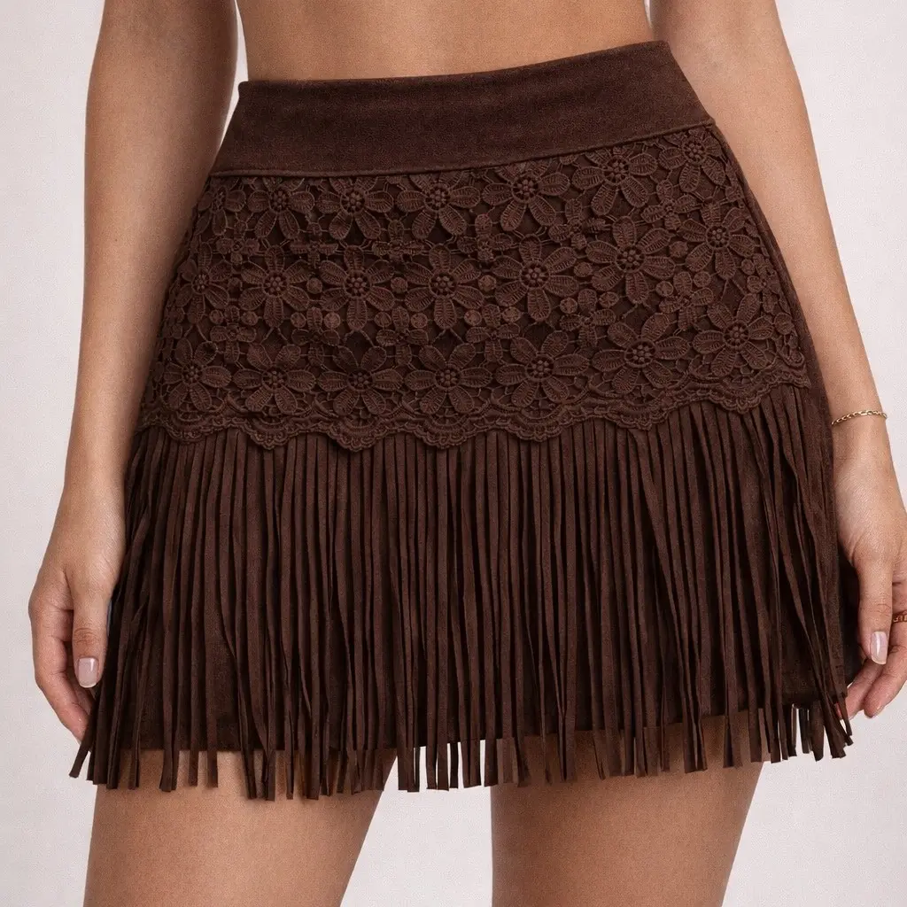 ✨ This mini skirt features a charming floral fringe design. Perfect for adding a touch of elegance to your outfit. The skirt's unique style makes it a standout piece in any wardrobe. Pair it with your favorite top for a chic look.