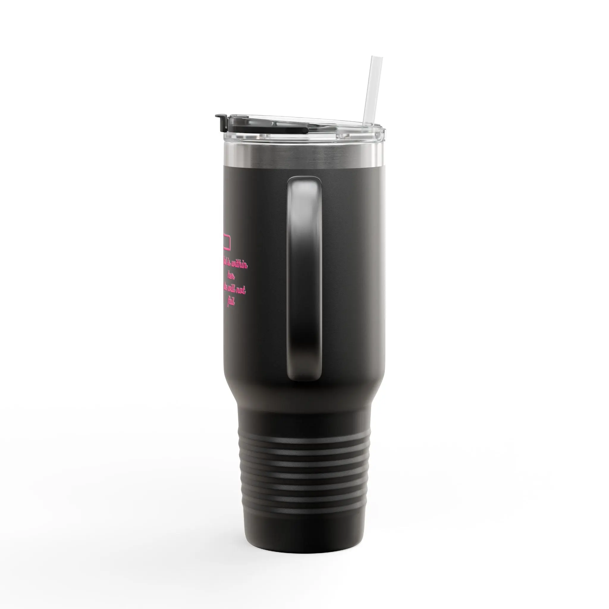 This 40oz insulated travel mug keeps you moving without compromising on warmth, cold retention, or style. The double-wall stainless steel construction locks in temperature for hours, while the ergonomic handle and large capacity mean fewer refills on long drives, hikes, or between meetings. A secure push-on, leak-proof lid and included straw make sipping easy on the go. The powder-coated finish offers a soft, grippable surface and comes in multiple colors so your mug can match your routine. Subtle UV-DTF artwork gives the exterior a clean, lasting print that stands up to everyday use. BPA-free and built to resist rust, this tumbler becomes the reliable companion for road trips, early mornings, and outdoor routines.