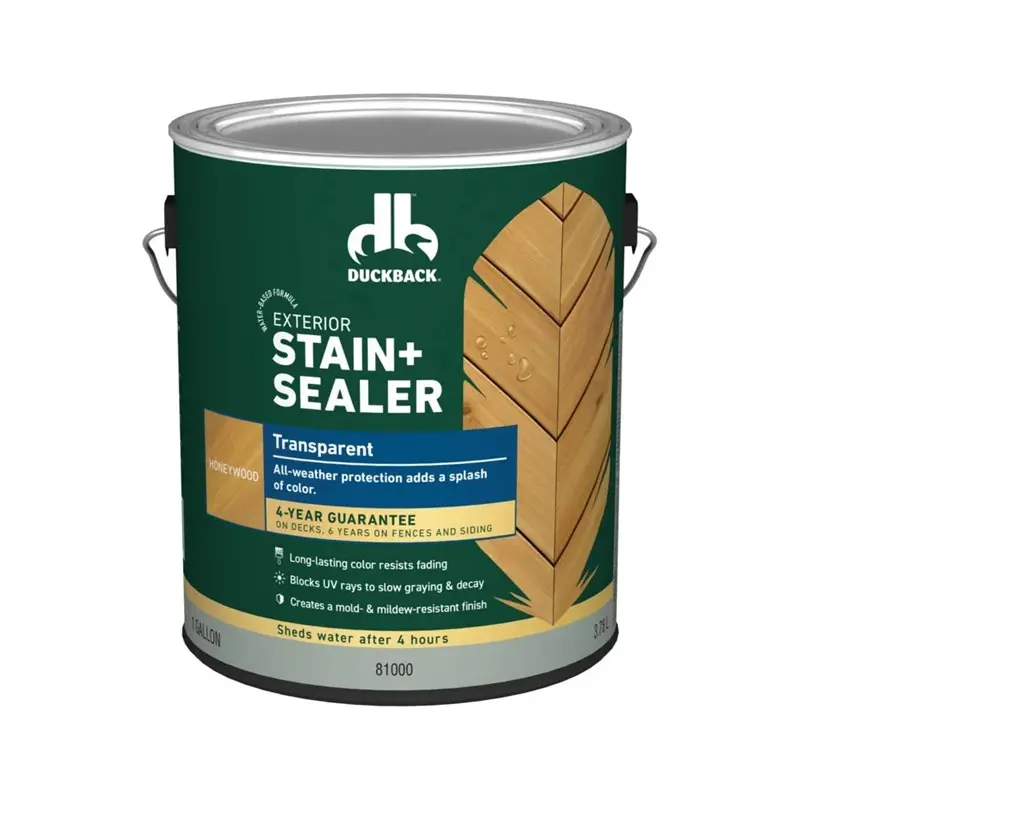 Duckback's Water-Based Transparent Exterior Stain+Sealer is ideal for all new or reconditioned wood surfaces that are in excellent condition. The transparent formula penetrates into the surface providing a splash of color to highlight the natural texture and beauty of wood.