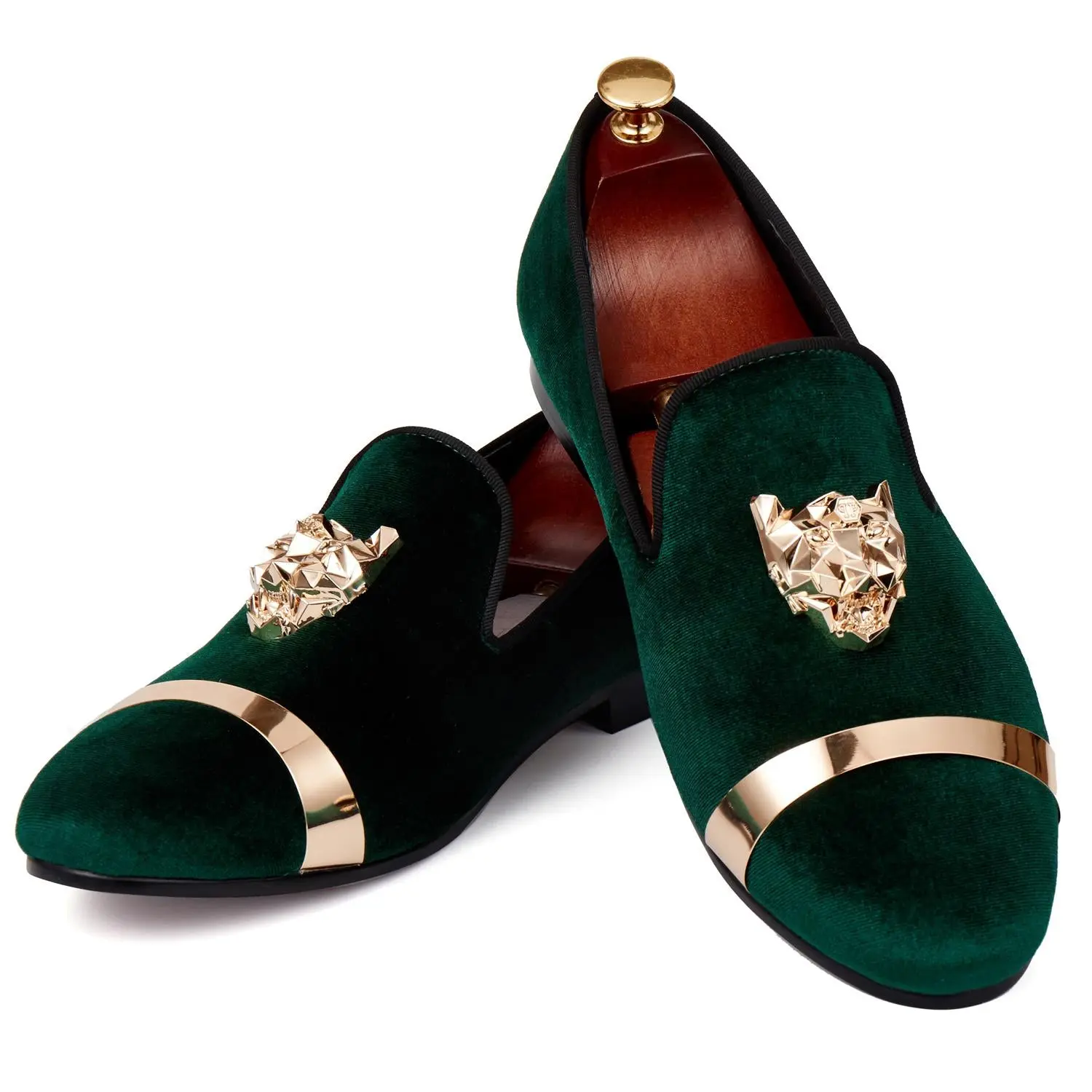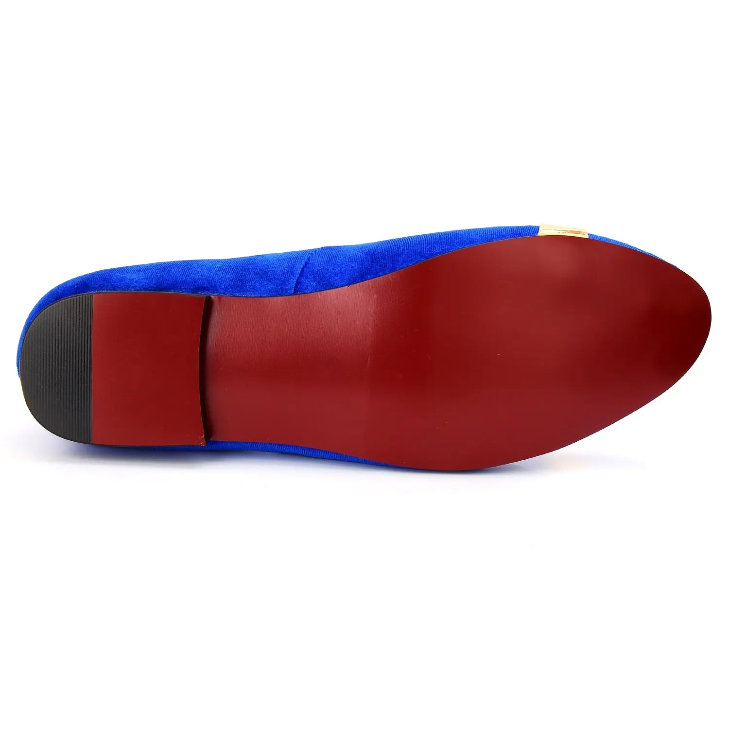 Harpelunde Men Flats Dress Shoes Blue Velvet Loafers With Animal Buckle