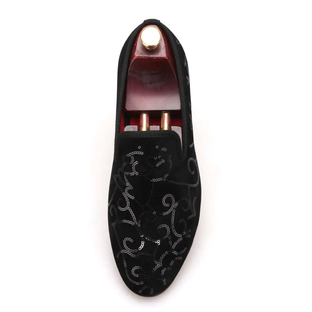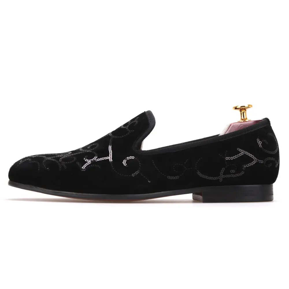 OneDrop Handmade Sequin Black Men Velvet Dress Shoes Wedding Party Prom Loafers