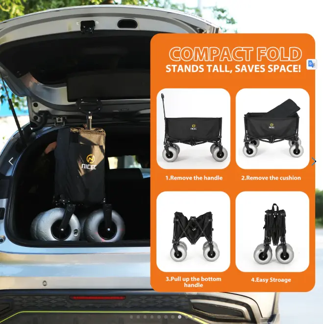 Compact Folding Design – Folds flat in seconds for simple storage in trunks, garages, or closets.