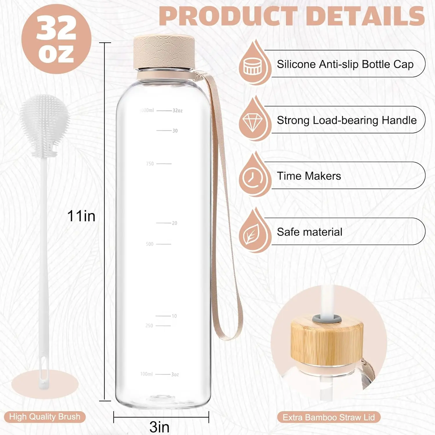Crafted from BPA-free, BPS-free, PVC-free, and lead-free plastic, this bottle is safe and stylish. It features a chic silicone sleeve for enhanced grip and durability. Enjoy a chic, safe drinking experience with this 32 oz water bottle.