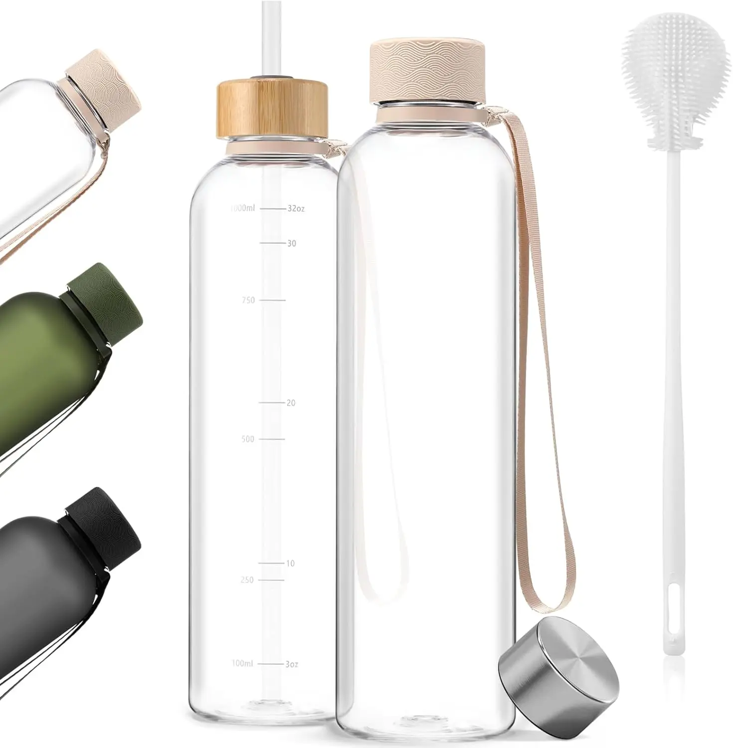 Our 32 oz water bottle offers two interchangeable lids. One is a straw lid for easy sipping, and the other is a secure handle lid with a stylish silicone sleeve. Perfect for home or office, this slim bottle adapts to your lifestyle. Stay hydrated effortlessly with this versatile design.