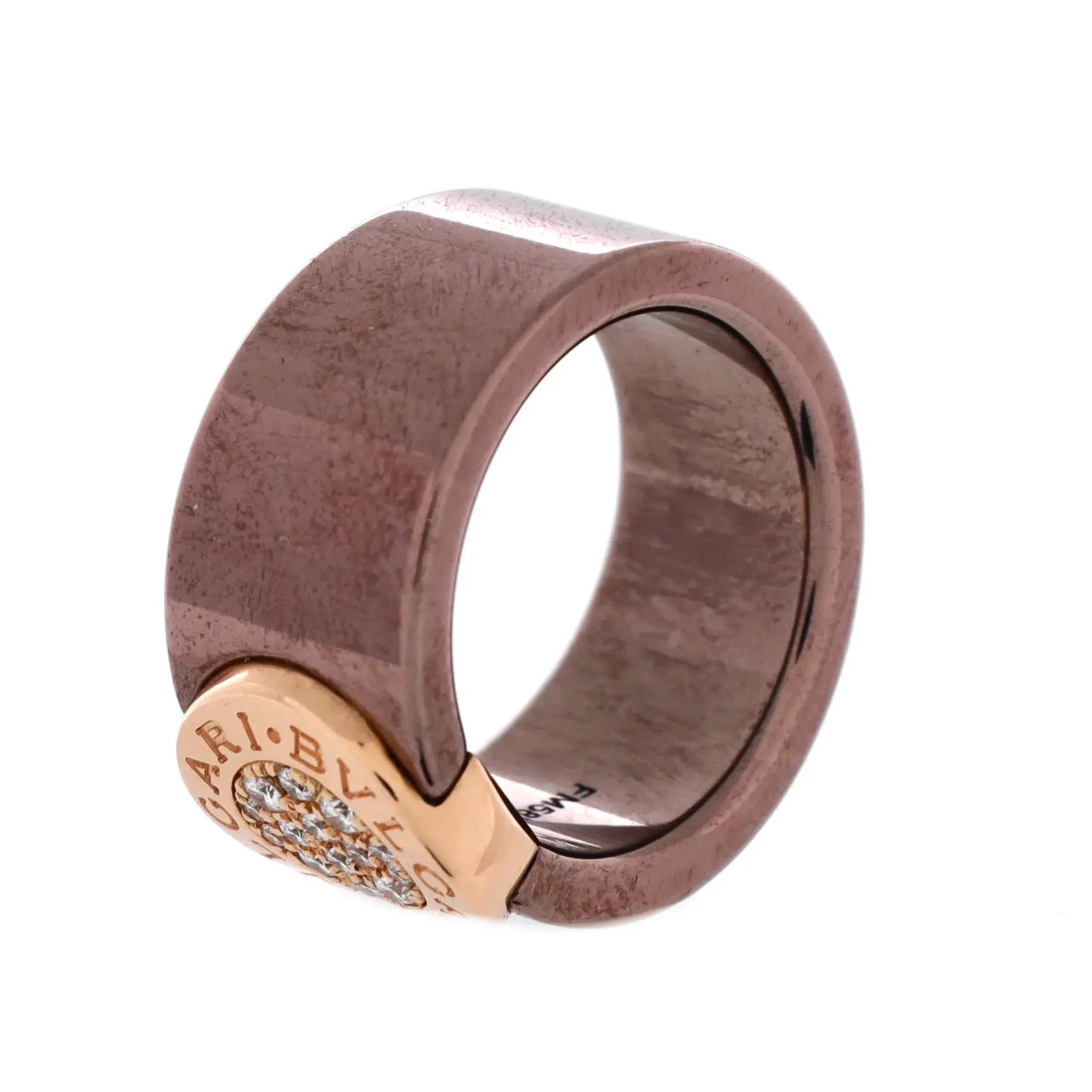 Pre-owned Bvlgari Cigar Band Ring 18k Rose Gold and Metal with Diamonds by Rebag