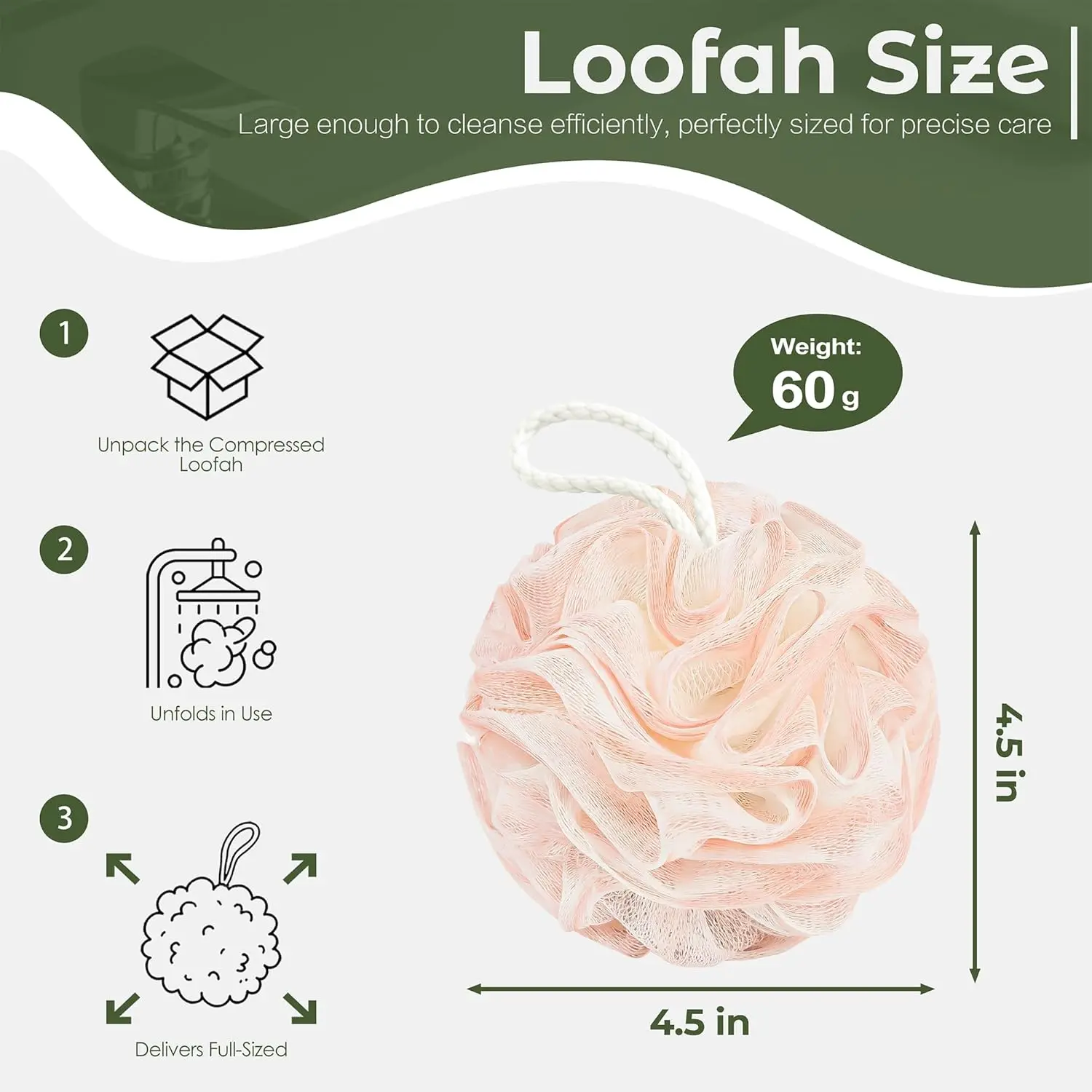 Each loofah sponge features a convenient hanging loop, keeping your sponges dry and ready for use. The loop also makes storage easy, saving space in your bathroom. With this 4-pack, you'll have a reliable exfoliating tool for your daily shower routine.