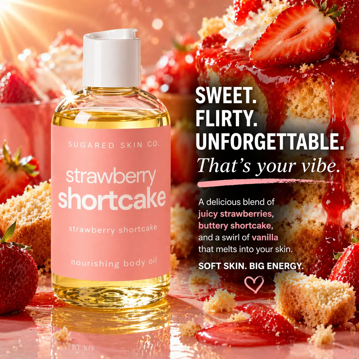 Fresh strawberries. Fluffy whipped cream. A soft, warm cake finish that feels like your favorite childhood dessert got a serious glow up. This dreamy, lightweight body oil melts into your skin instantly — leaving behind deep hydration, a gorgeous lit-from-within glow, and a sweet, feminine scent so addictive you'll want to wear it every single day.