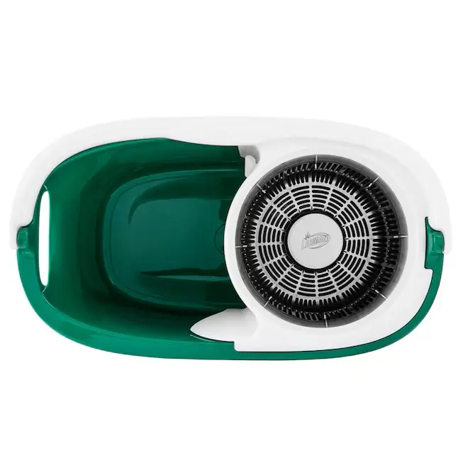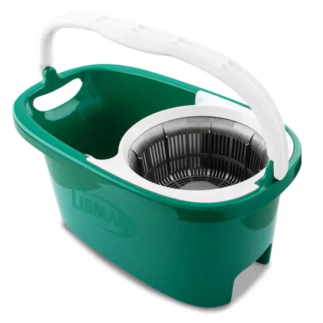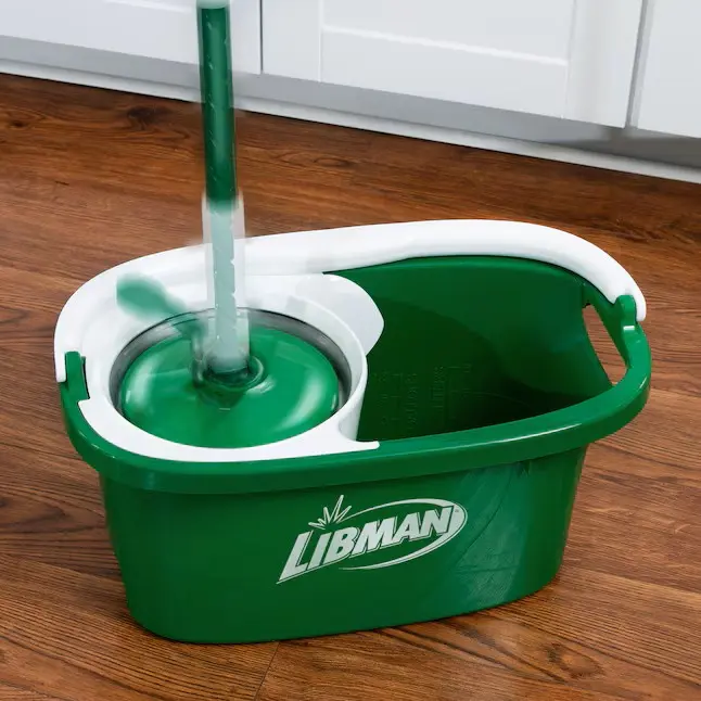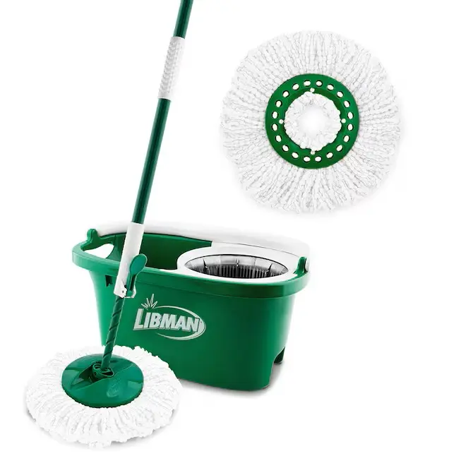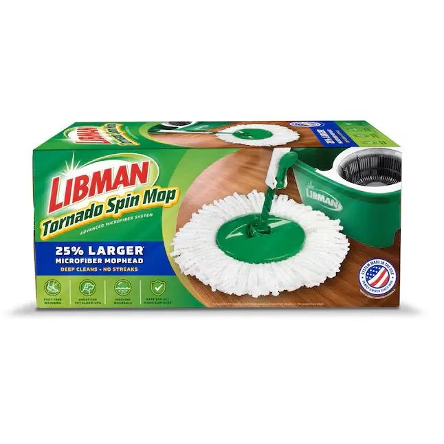 The Libman Tornado Spin Mop System is a convenient all-in-one mopping system. It is designed with a large, microfiber, machine-washable mop head that absorbs and removes more water so your floors dry quickly. The microfiber is tough enough for dirt and grime but soft enough that it won’t scratch floors and can be used on any hard floor surface. The heavy-duty bucket and spinning chamber work to remove water and dirt efficiently from the mop head. The 2-gallon bucket is also designed to prevent tipping while carrying and has a convenient pour spout for emptying. The lower handle is precision-molded and impact-resistant to last through all your toughest mopping jobs. You can unlock and push the handle down once for a damp mop or more times for a drier mop.