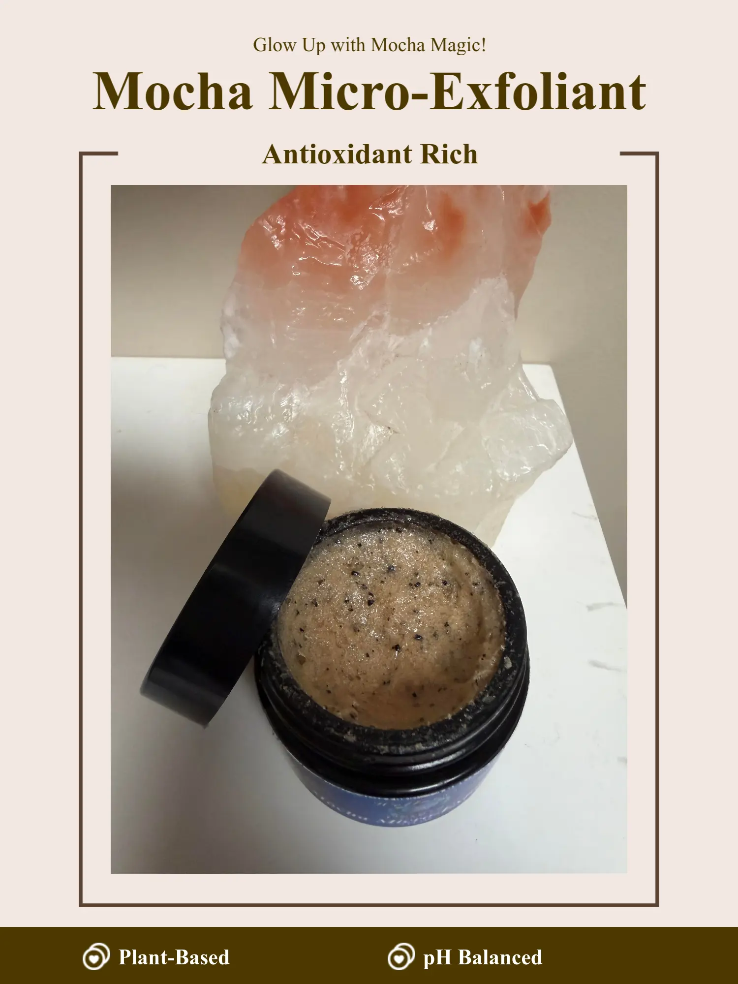 Awaken your complexion with Wellness Origin Mocha Micro Exfoliant, a gentle foaming face scrub featuring organic finely ground coffee beans and natural sugar for micro-exfoliation. This plant-based formula delicately buffs away dead skin cells, unclogs pores, and reveals smoother, brighter, more radiant skin—while the rich lather leaves your face feeling refreshed, rejuvenated, and energized. The irresistible mocha-coffee aroma delivers an indulgent, uplifting sensory boost, like a morning coffee ritual for your skin—perfect for starting your day with a glow.