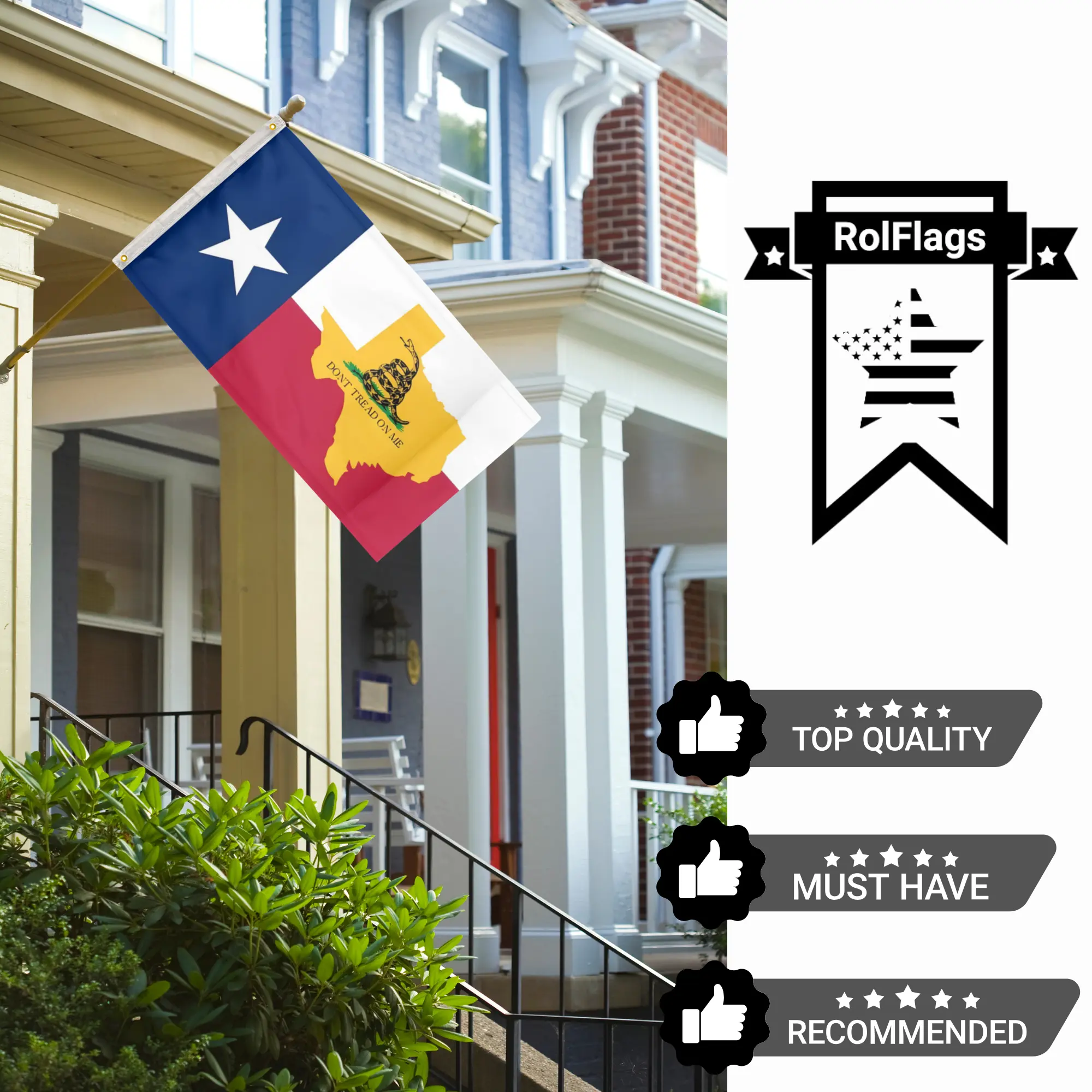 Texas Flag & Map Gadsden 3'X5' Flag 100D Polyester (90cm x 150cm) DTOM (G17) RolFlags