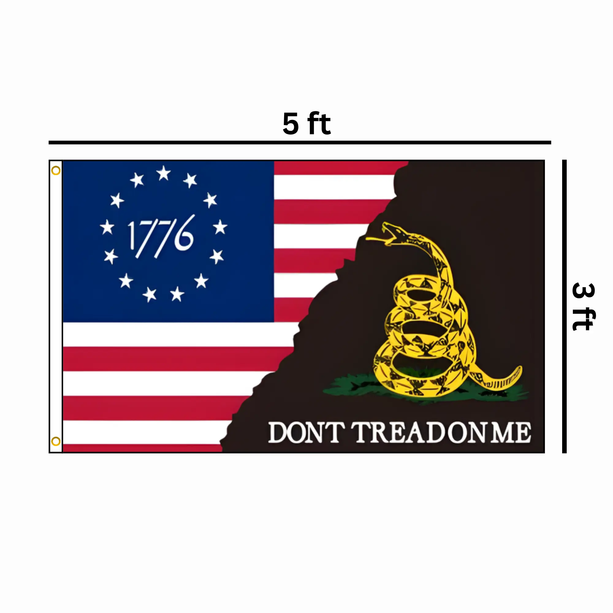Betsy Ross Black Gadsden 3'X5' Flag 100D Polyester (90cm x 150cm) DTOM (G19) RolFlags