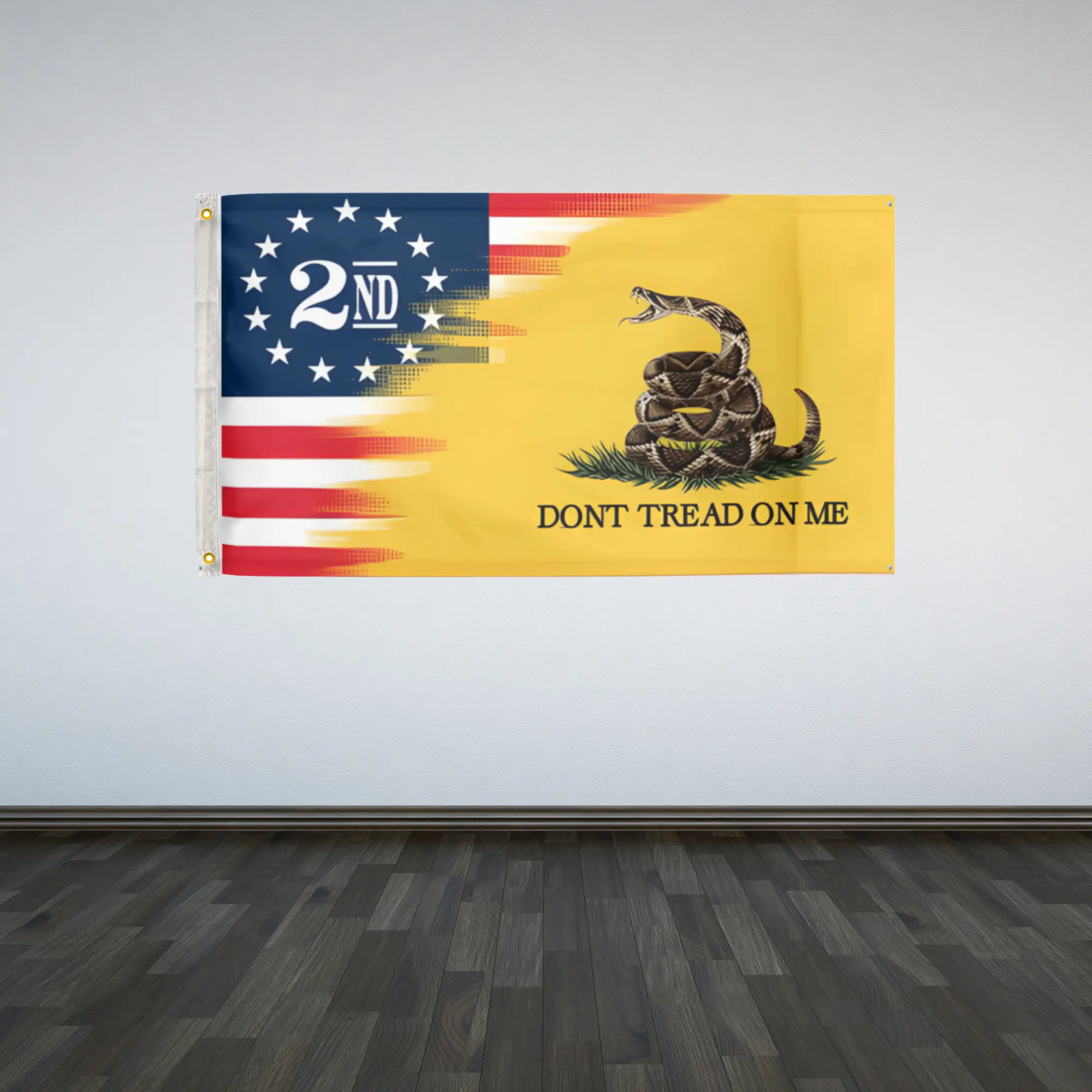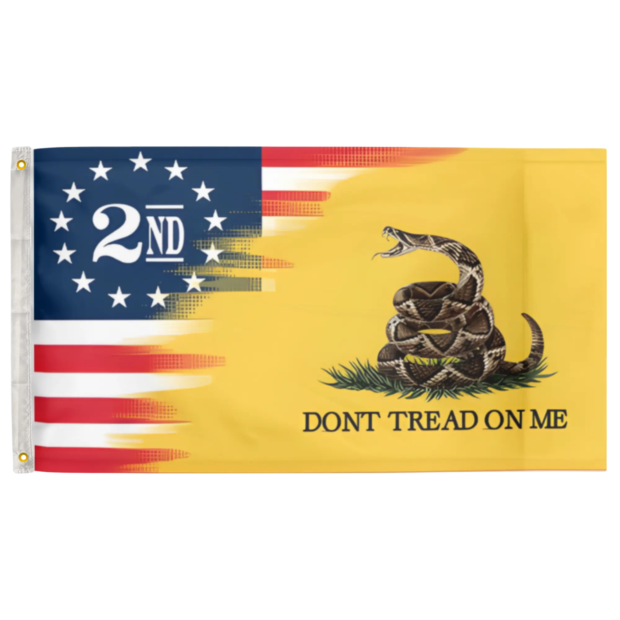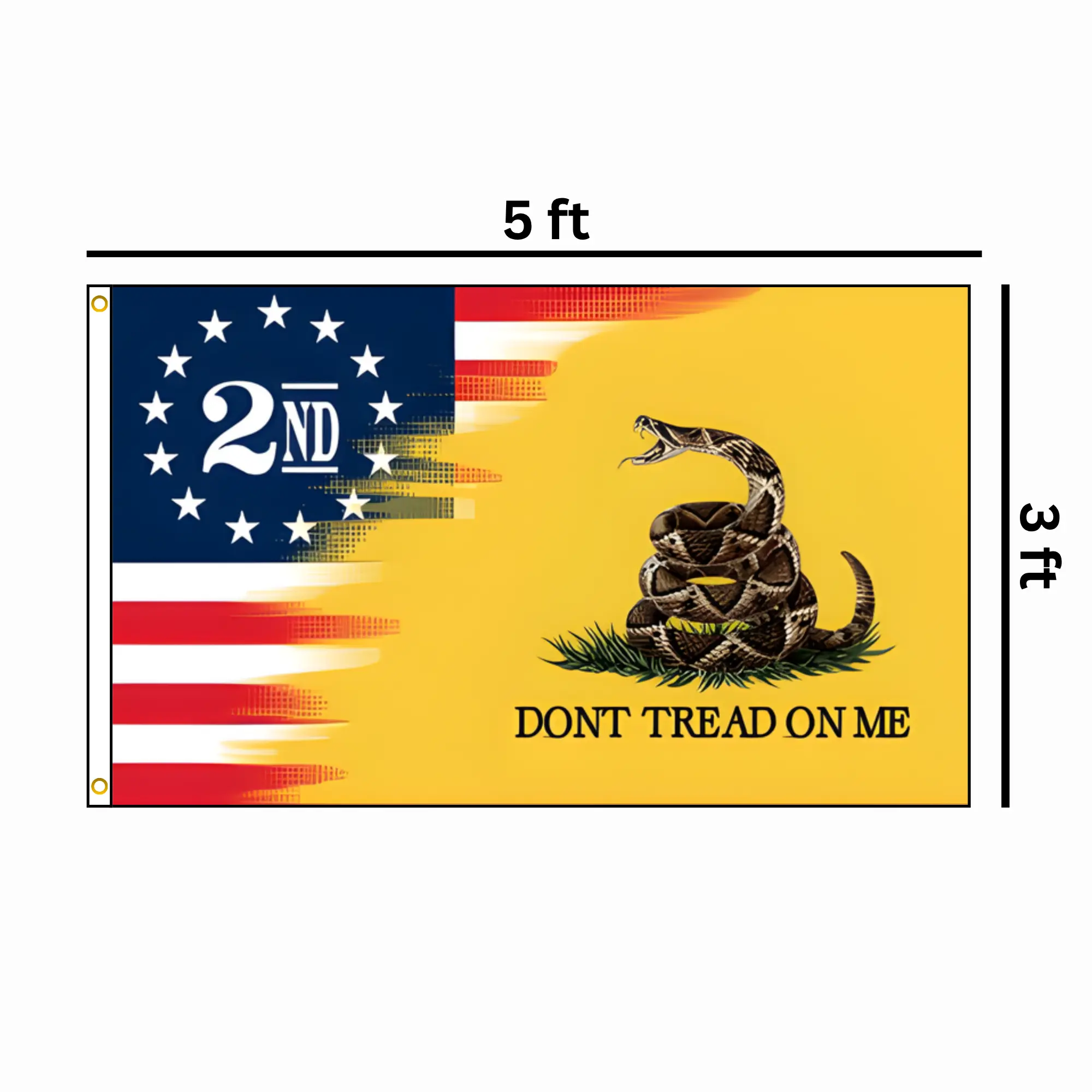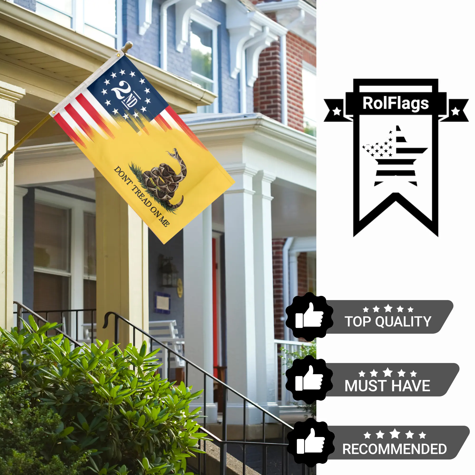 The Betsy Ross 2nd Amendment Gadsden 3'x5' Gadsden Don't Tread On Me Flag is a traditional and patriotic flag designed for outdoor display. Made of 100% polyester material, this multicolor flag features a Gadsden Flag subject and is waterproof for durable use. With a size of 3 x 5 ft, it is easy to hang from a flagpole and is ideal for showing support for the history of the United States in a yard, garden, or outdoor living space. It is a stylish and eye-catching addition to any home or garden décor.