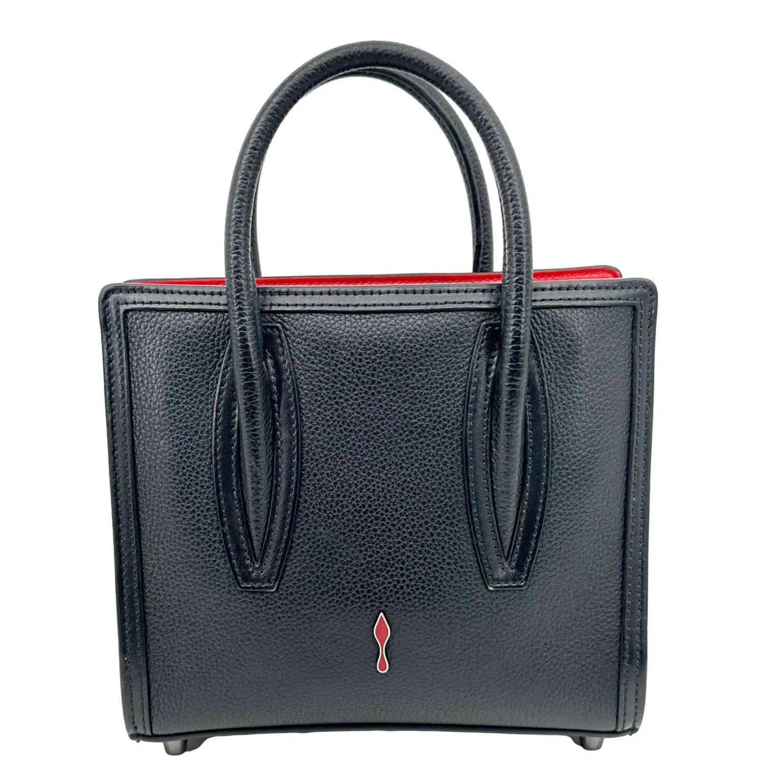 CHRISTIAN LOUBOUTIN Paloma Mini Leather Tote Bag in black, featuring a structured silhouette and signature silver-tone hardware. Compact yet stylish, ideal for daily essentials with a chic, modern edge