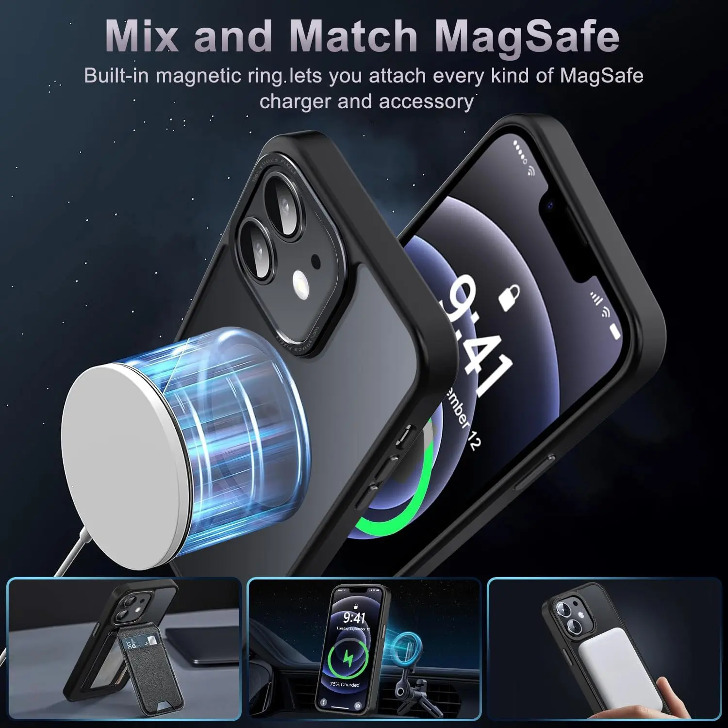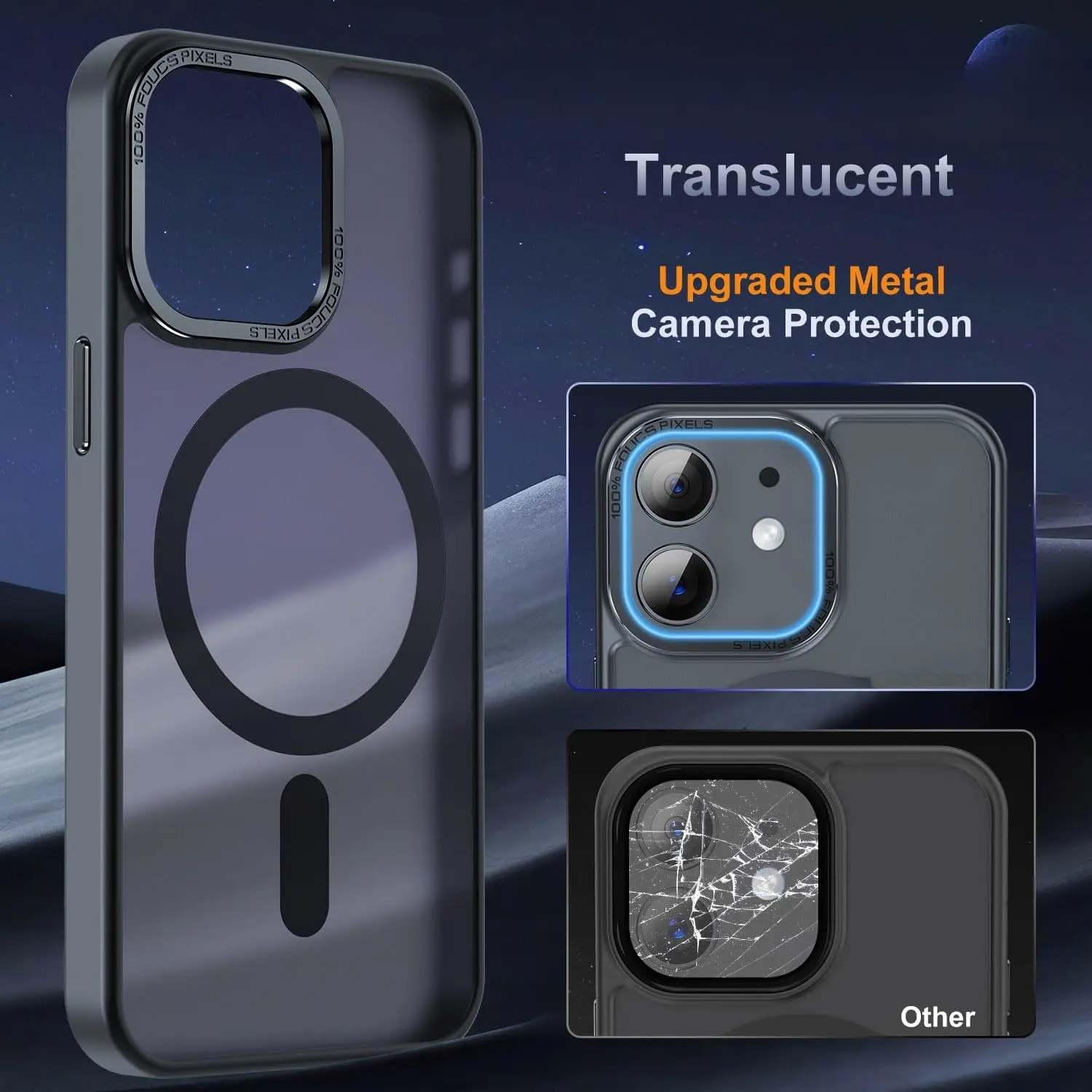 [Metal Camera Frame & Buttons]This magnetic case for iPhone 12/iPhone 12 Pro/iPhone 12 Pro Max adopts frosted translucent back panel and TPU frame, skin-friendly material and comfortable grip. What's more, the camera frame is made of high quality metal material, and the buttons are designed in metal frosted. It not only provides a stylish look, but also is durable