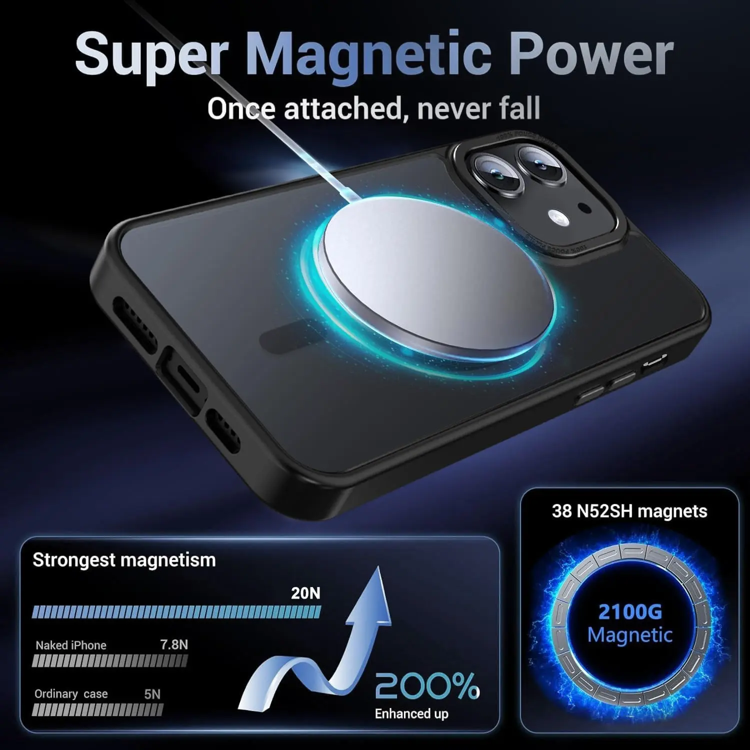 [Powerful & Upgrade Magnet]With 38 pieces of upgraded N52 magnets,the phone case for iPhone 12/iPhone 12 Pro/iPhone 12 Pro Max magnetic strength is 2X stronger than others.It allows for fast charging speed and provides strong and secure connections with magnetic accessories such as wallets, chargers, car mounts, etc.Meanwhile, it won't damage and decrease the phone's longevity