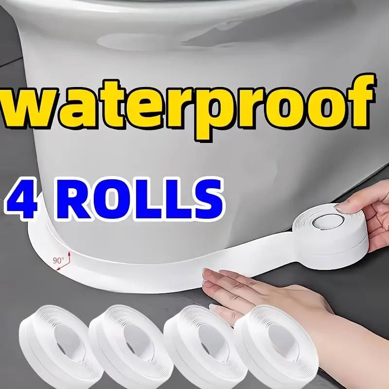 4pcs White Caulk Tape Waterproof Self Adhesive, White Bathroom Caulk Toilet Caulk Strip Bathtub Sealing Strip Tape For Bathroom Caulking Tape Shower Caulk