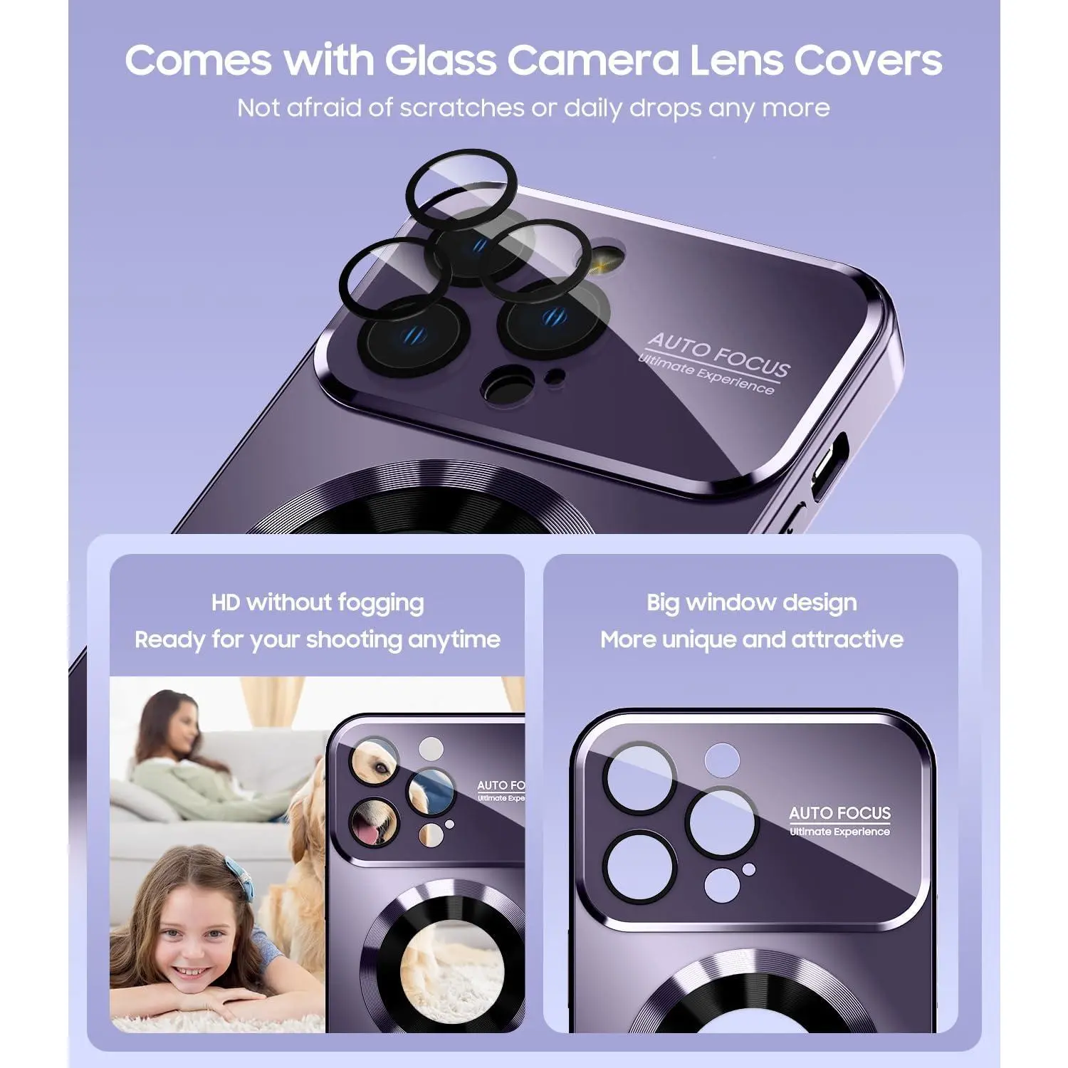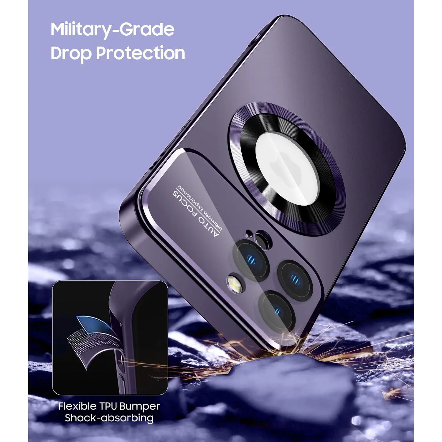 Magnetic for iPhone 17 Pro Max Cases 16 15 14 13 12Pro Max Plus, Compatible with MagSafe, Built-in Camera Lens Protector, Logo View, Military Grade Drop Proof Phone Case Cover case, Purple