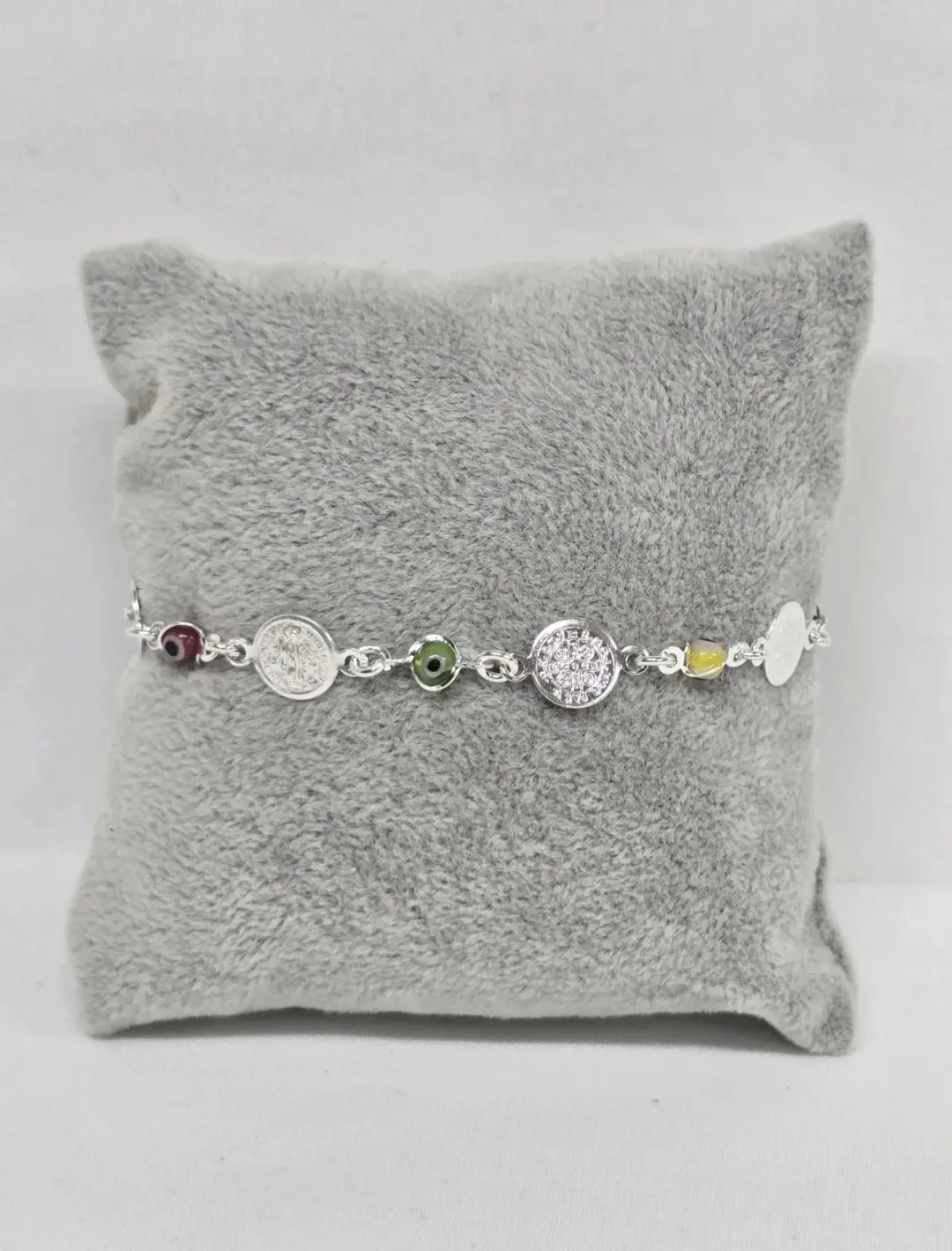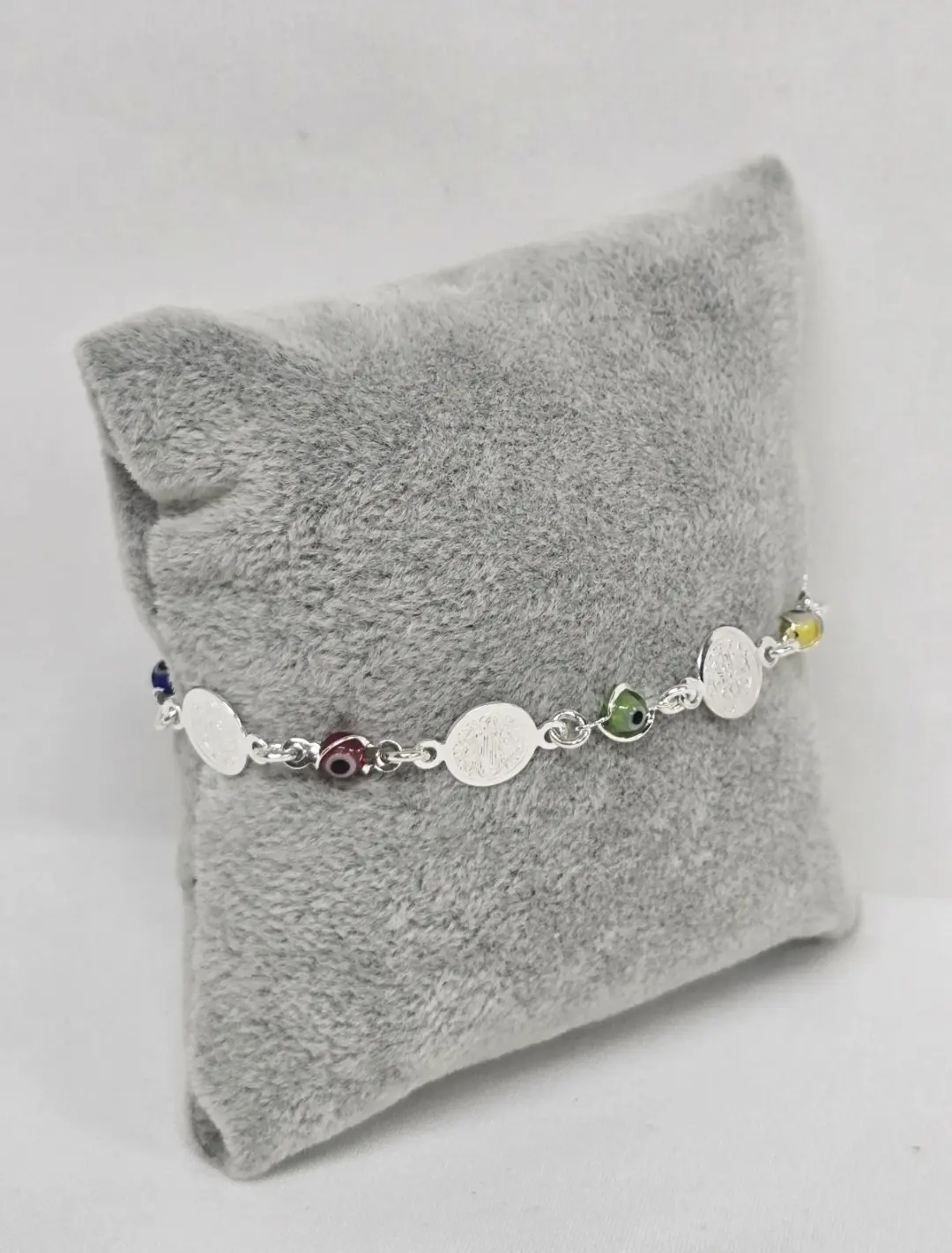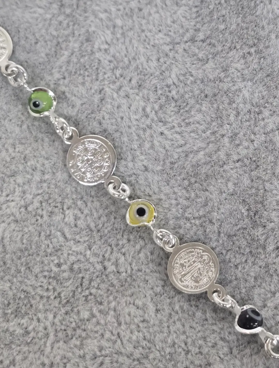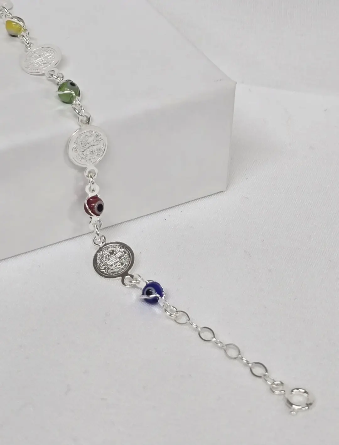 Pulsera de Proteccion de San benito con Ojo Turco de Colores Plata 925 - 19cm