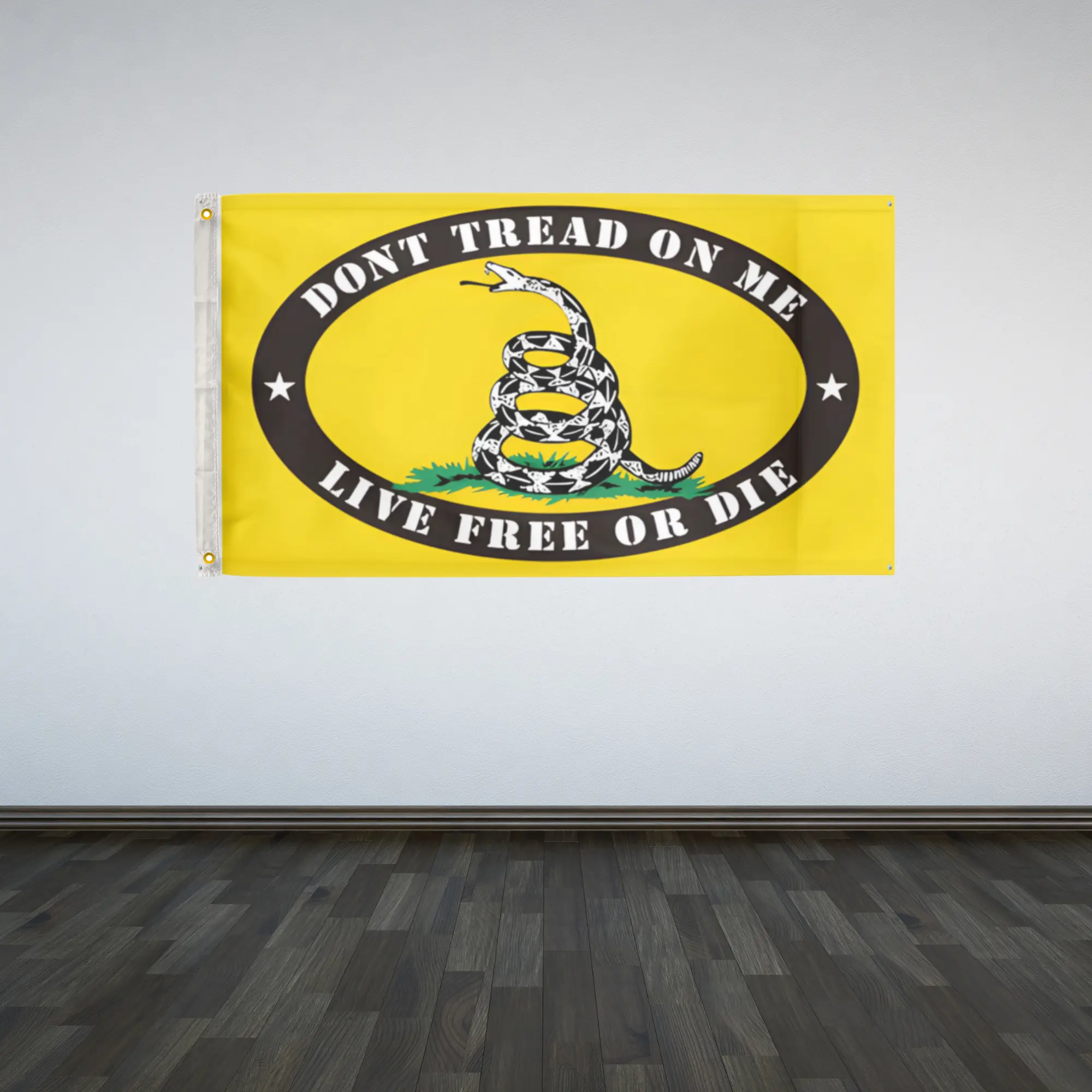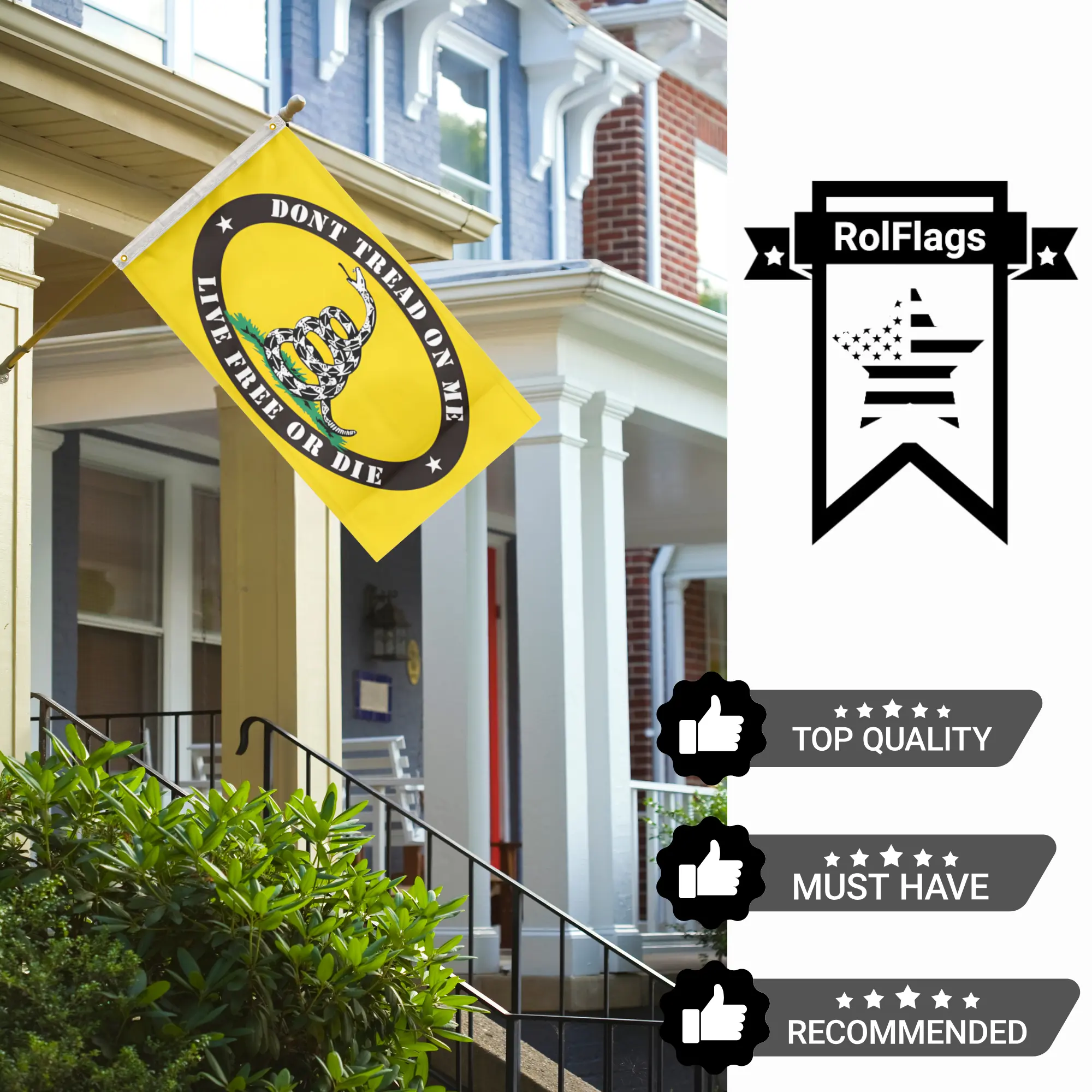 Gadsden Live Free or Die Yellow 3'X5' Flag 100D Polyester (90cm x 150cm) (G43) RolFlags
