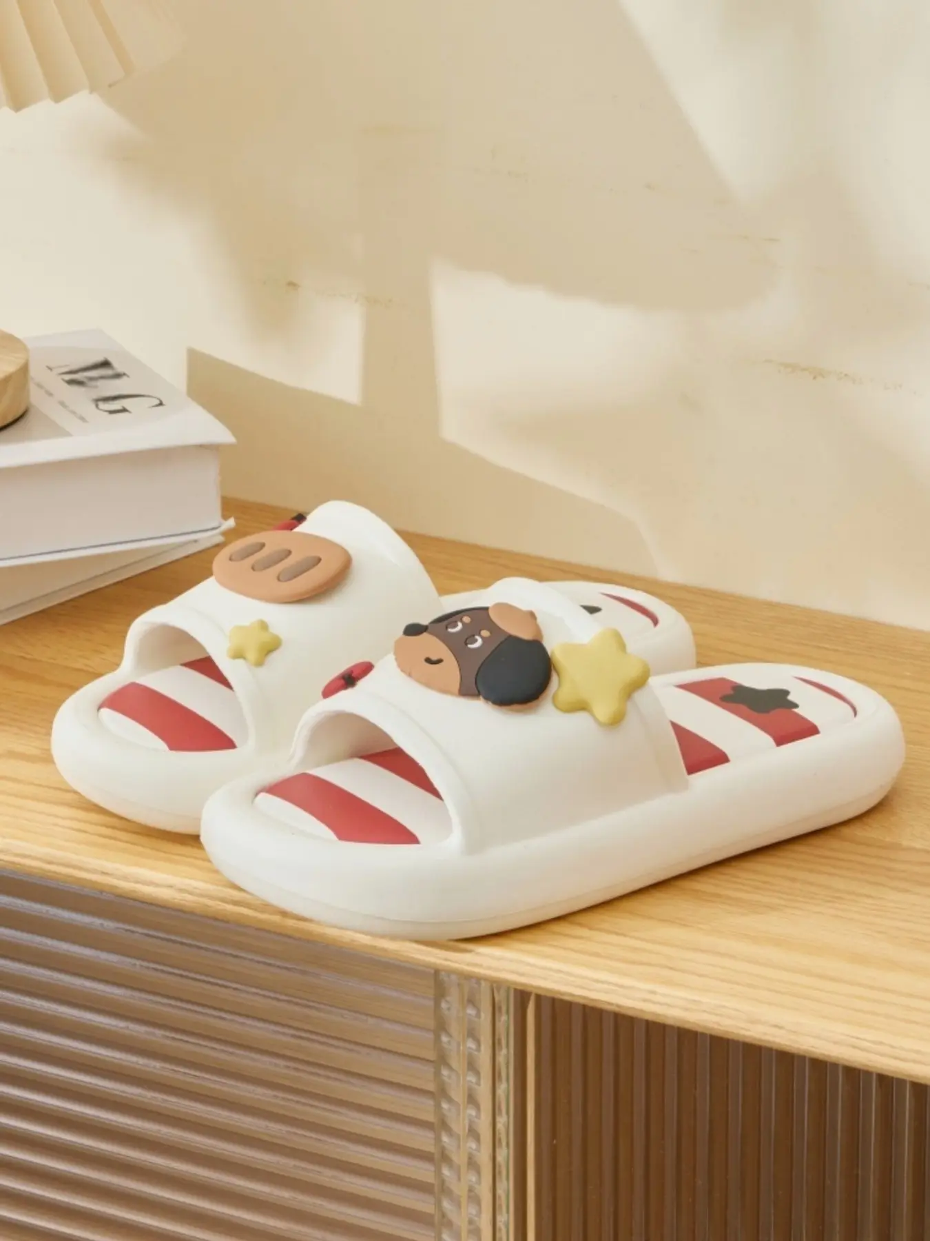 【Cartoon Dog Theme】: Adorned with a cute cartoon dog motif, making these slippers a fun choice for kids.