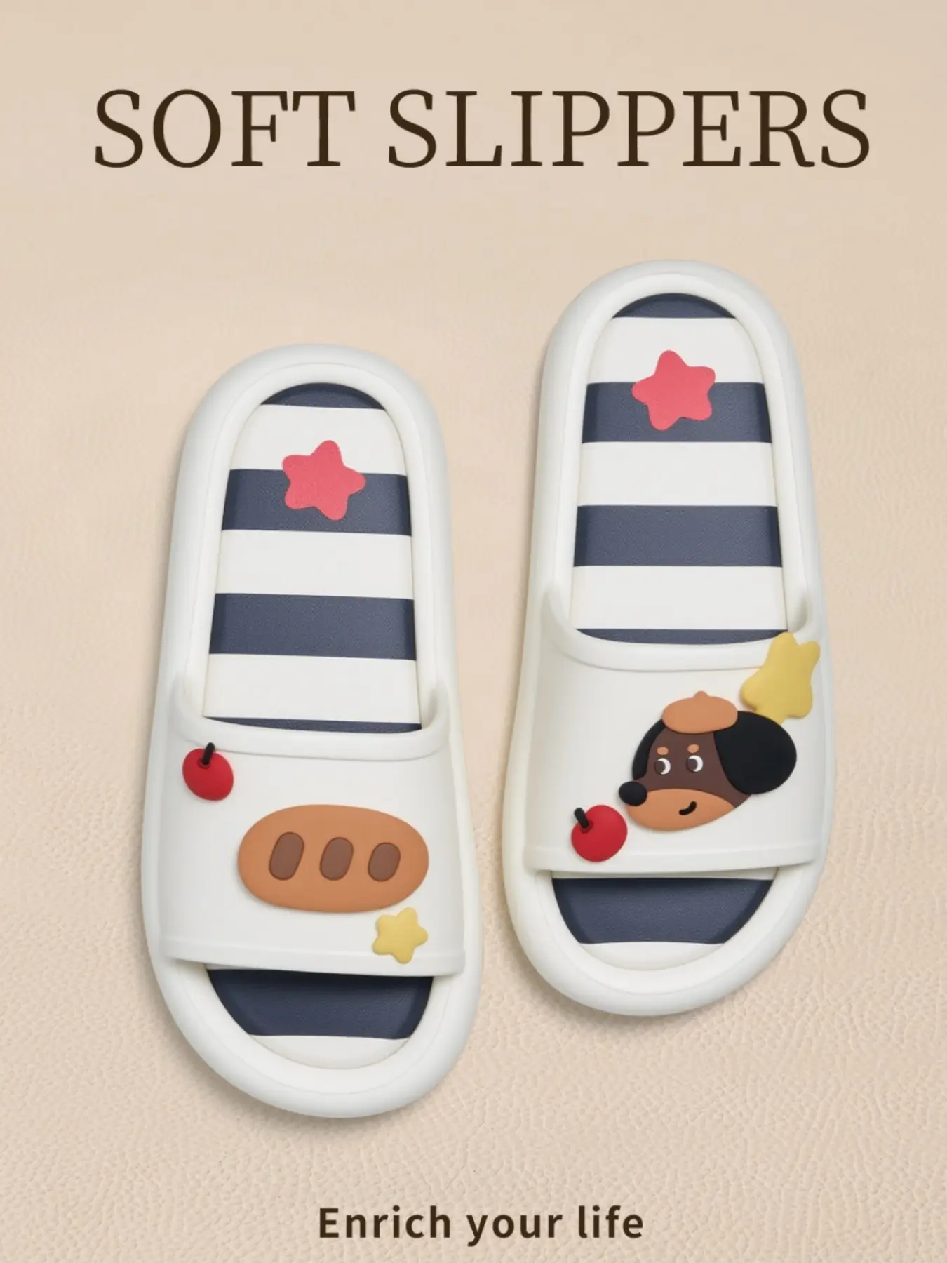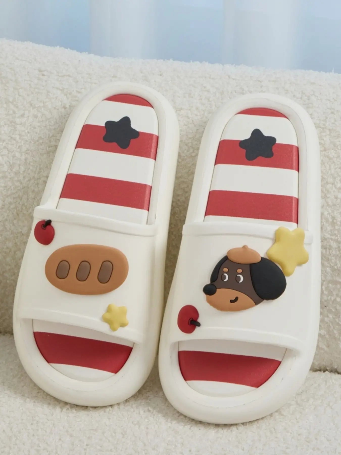 Cute Cartoon Dog Eva Slippers, Colorblock Striped Design, Comfortable Indoor Footwear, Perfect Gift, Multiple Colors Available