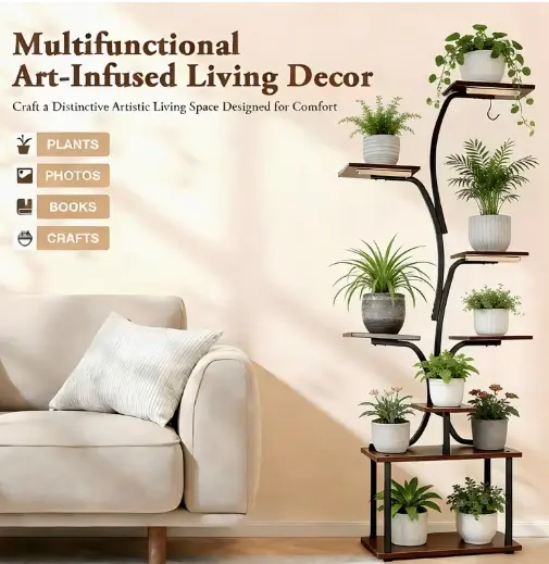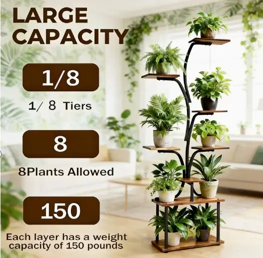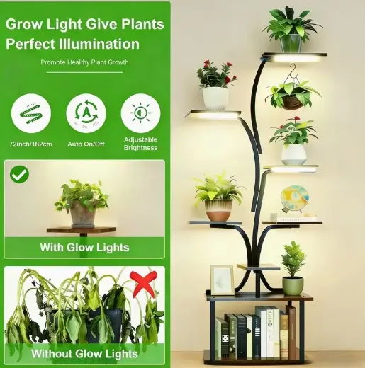 Adjustable Grow Lights 8-Tier Sturdy Metal Plant Display Rack, 62-Inch Corner Shelf Space-Saving Modern Style, Ideal for Homes, Living Rooms, Bedrooms, And Patios; Suitable for Potted Plants, Herbs, And Succulents