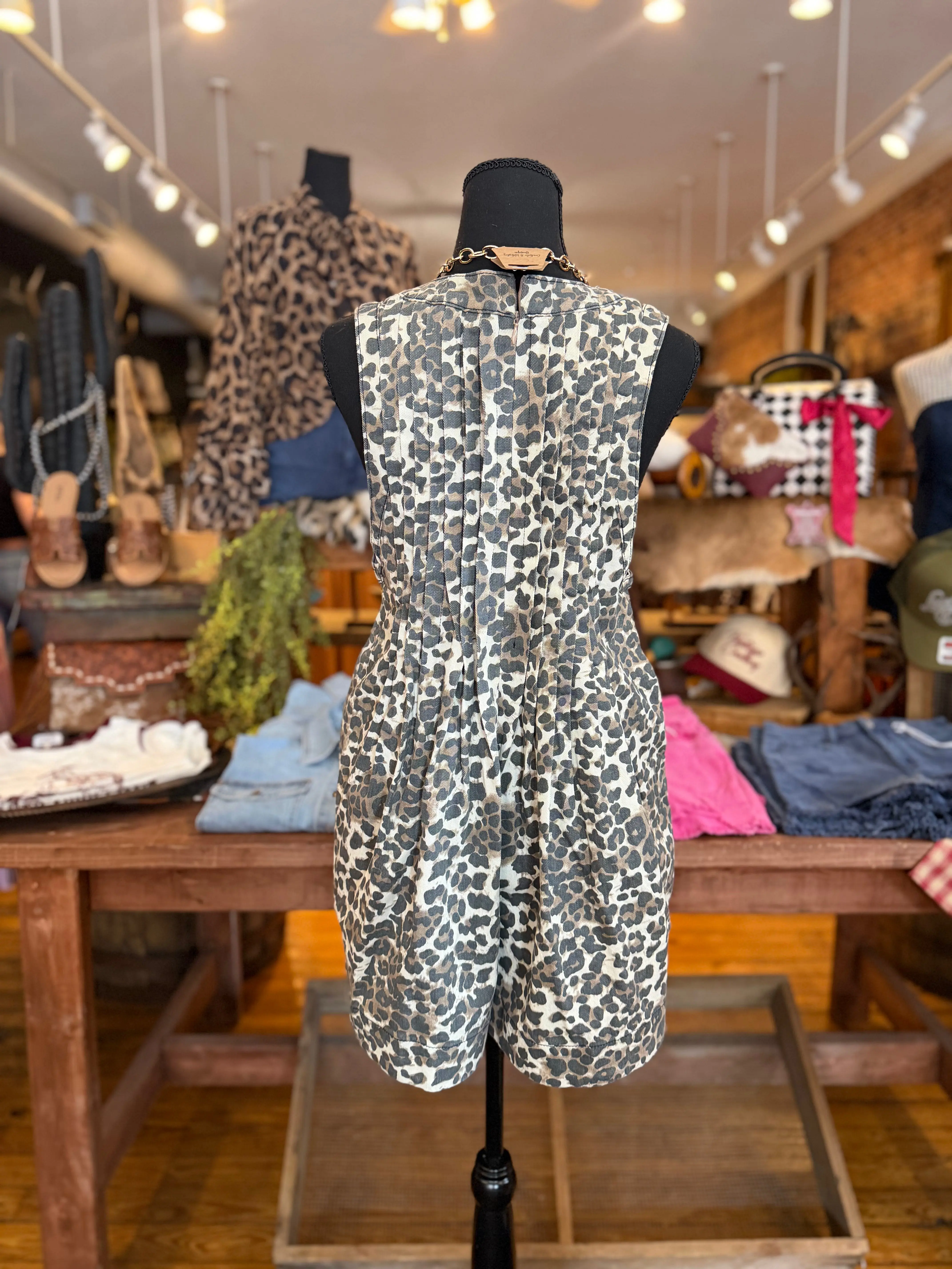 Bow Pocket Leopard Printed Denim Mini Skirt