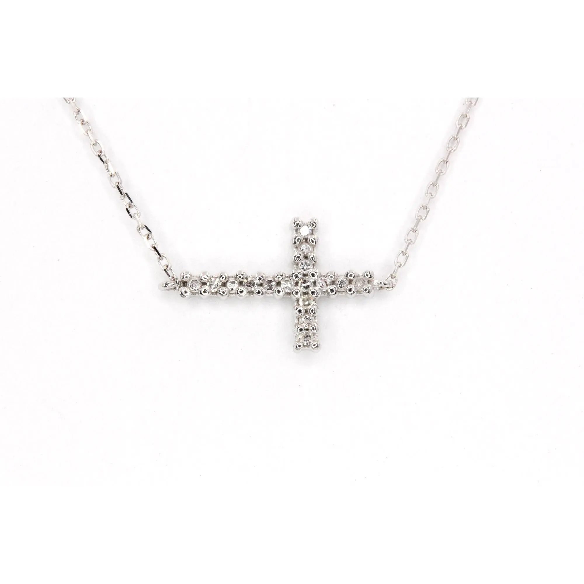 Dainty Diamond Cross Necklace - 14k White Gold - 0.04ctw