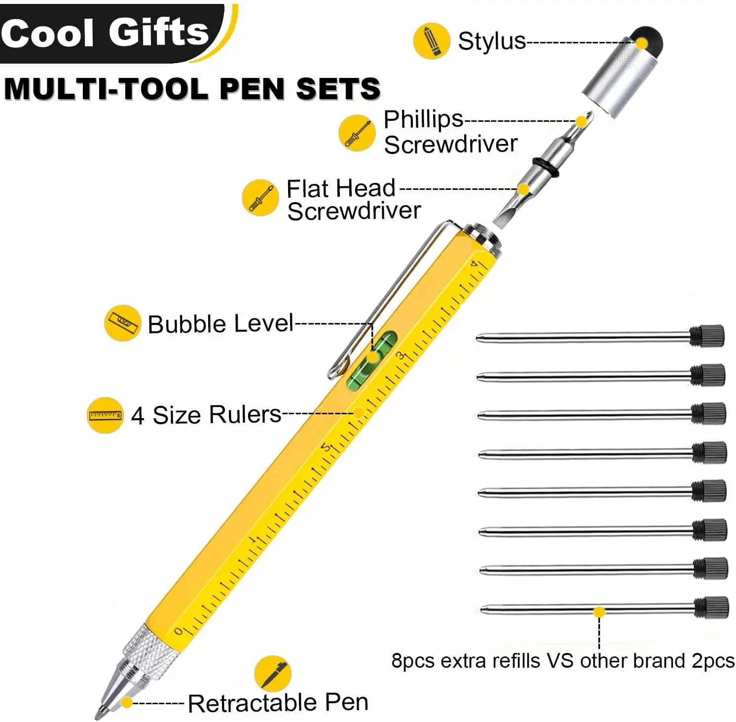 ·What you Get : 1pc X 6 in 1 multitool pen set, 8pcs X extral refills ,This tool pen can as a carpenter pen, engineering pen, carpenter pen,teacher pen ect.
