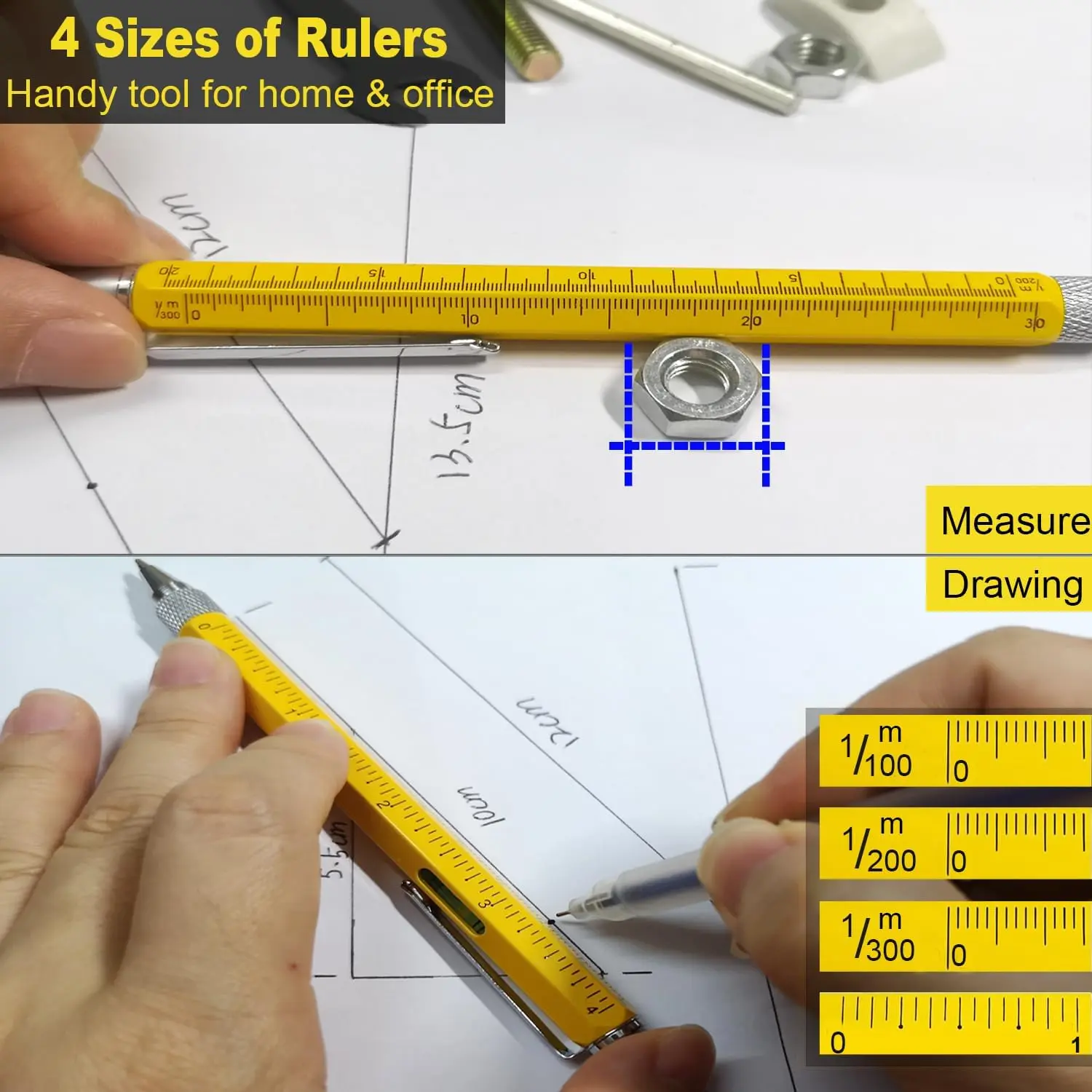 ·Gifts for Who Have everything: Multi tool pen with ruler as a gift for men women teen, they will give you an excited smile back. This pen multitool combine with stylus, bubble Level, centimeters/ in rulers, Flathead & Phillips Screwdriver and retractable ballpoint pens. Perfect as a tool gadget for men women work at home or office.