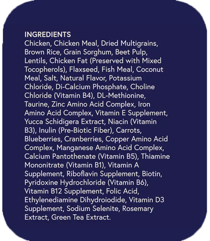Big Canyon Chicken and Multigrain dog food delivers big nutrition in every bite. Thoughtfully developed for dogs of all sizes, with real chicken as the first ingredient, it provides a complete and balanced diet for long-term health while supplying energy for all-day play. From mountain hikes to city strolls, fuel life-long adventure with Big Canyon.