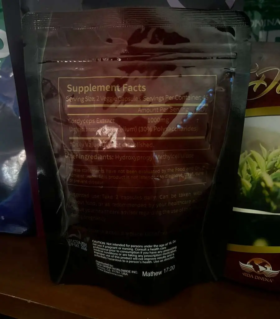 Cordy Capsules by Vida Divina is a dietary supplement made with cordyceps mushroom extract. Cordyceps has been traditionally used as part of a balanced lifestyle and is valued for its natural origin.