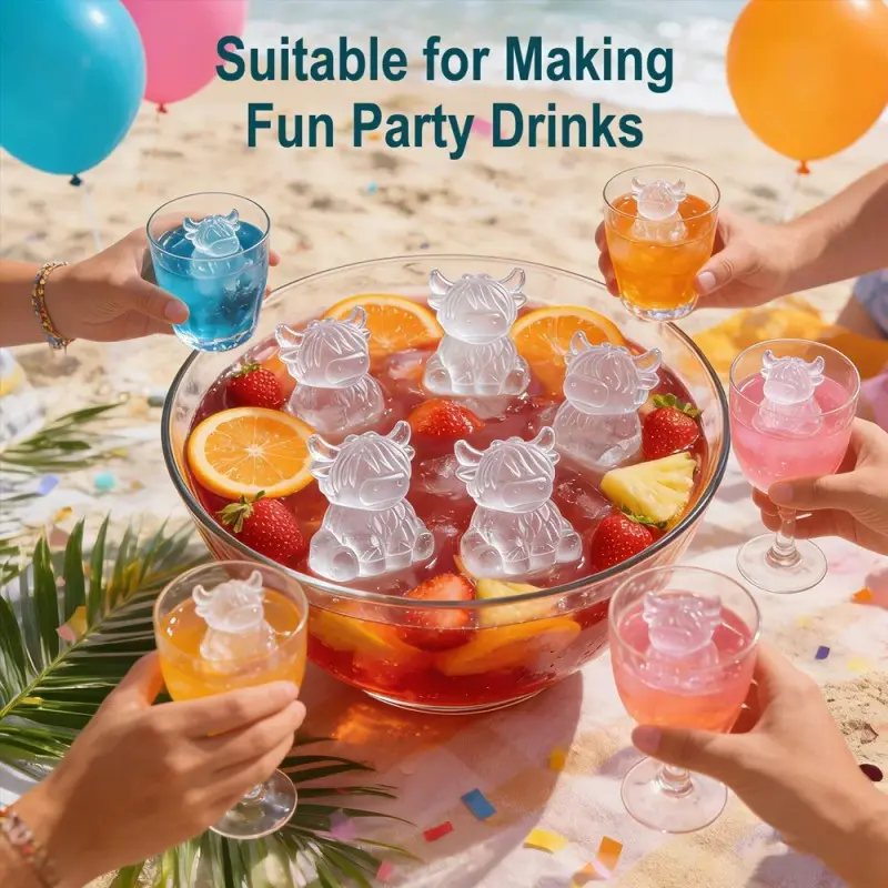 Mini Highland Cow Ice Cube Mold, Cute 3D Silicone Ice Tray, Cow Shape Ice Cubes, Ideal for Whiskey, Drinks, Parties, Bars, Birthdays, Gifts (6 Compartments)
