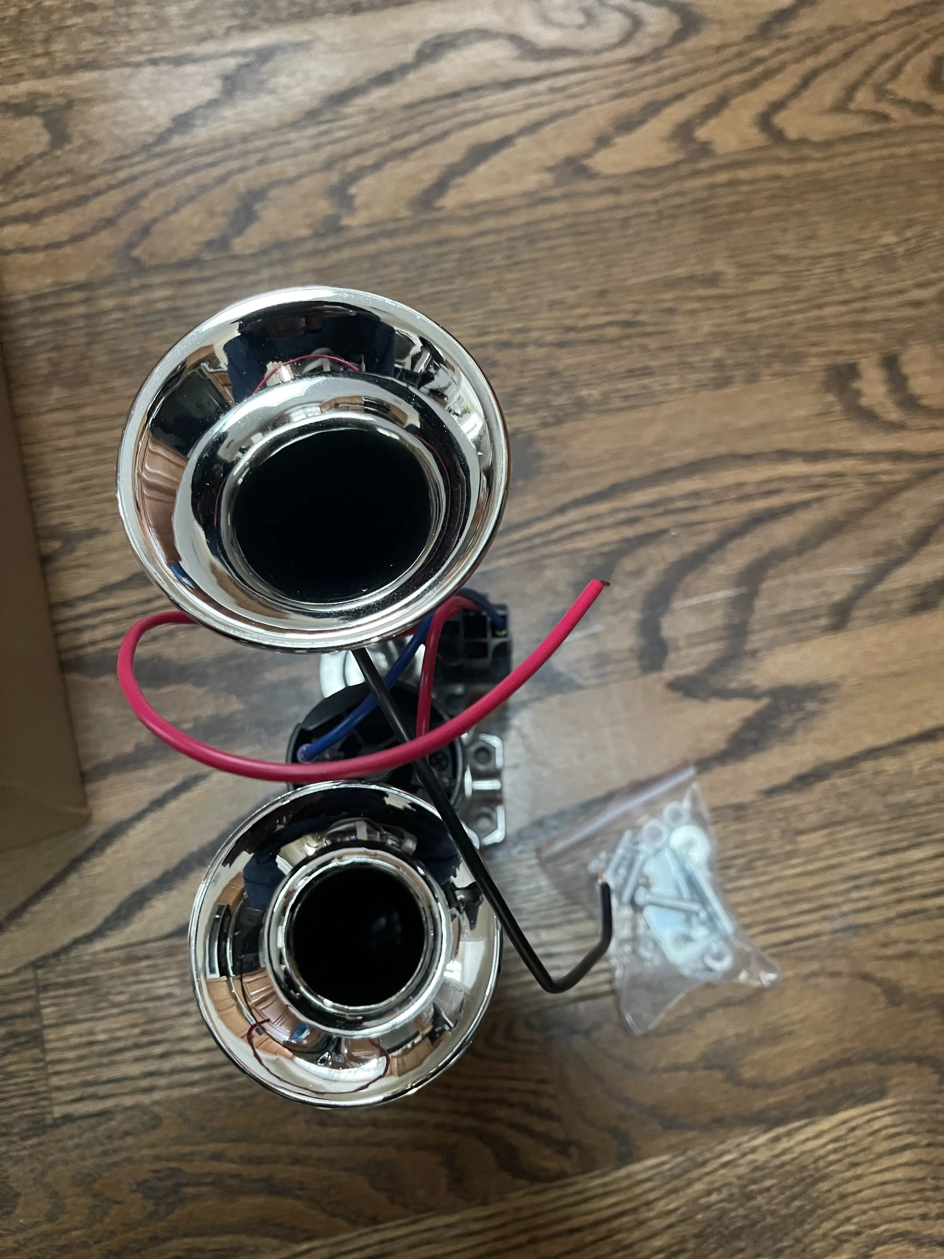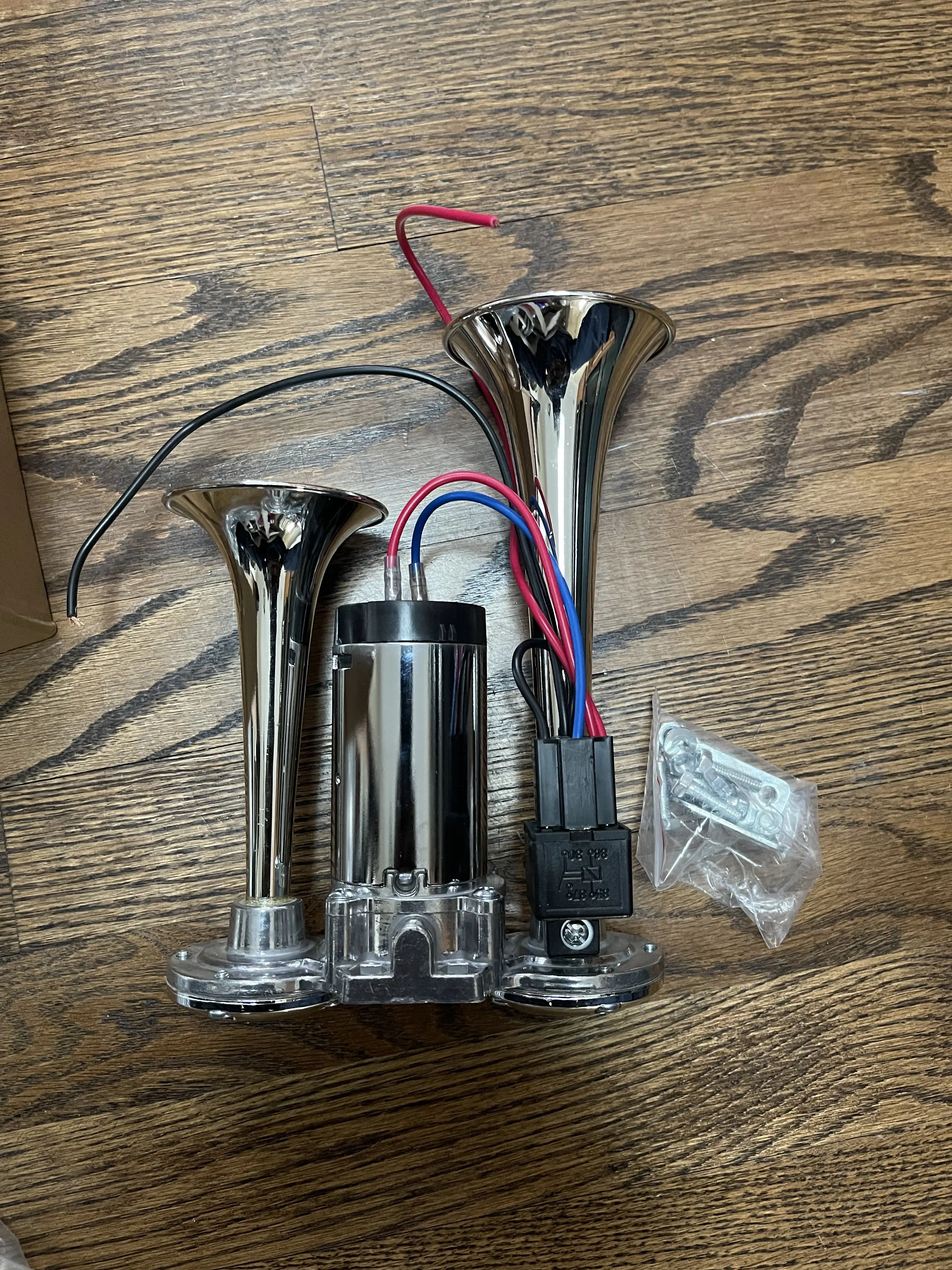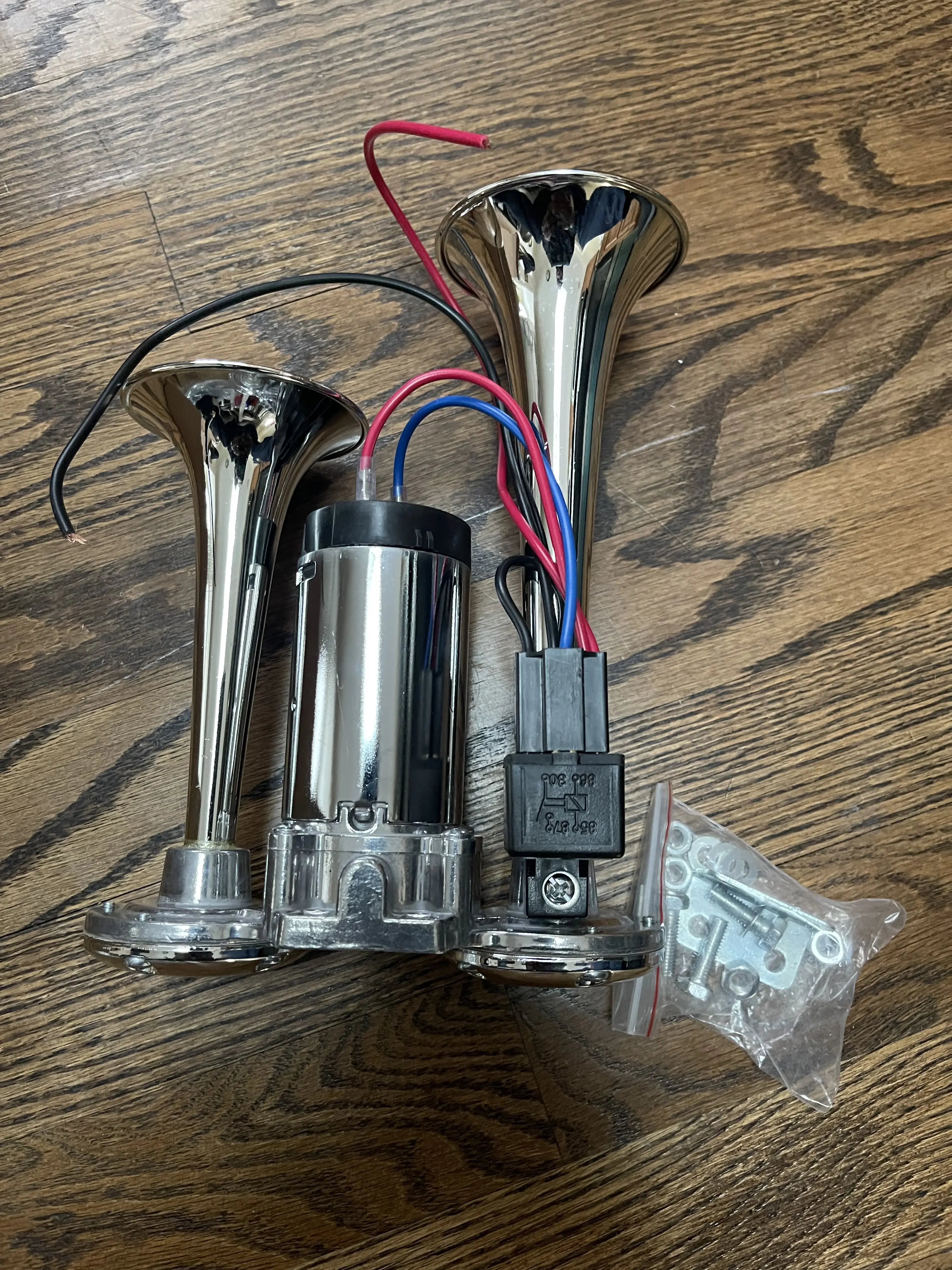 Powerful and loud double trumpet air horn. Comes with compresor attached. Very easy to install.
