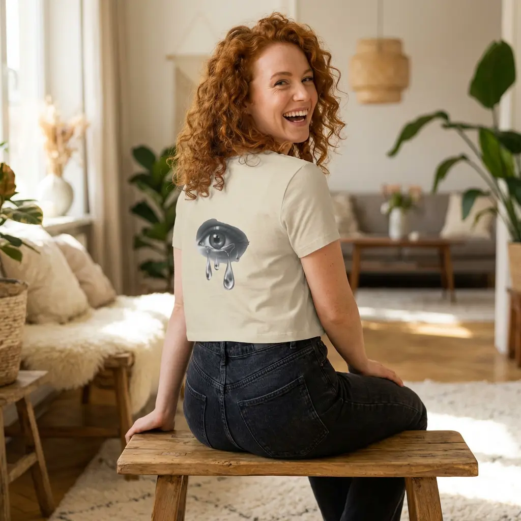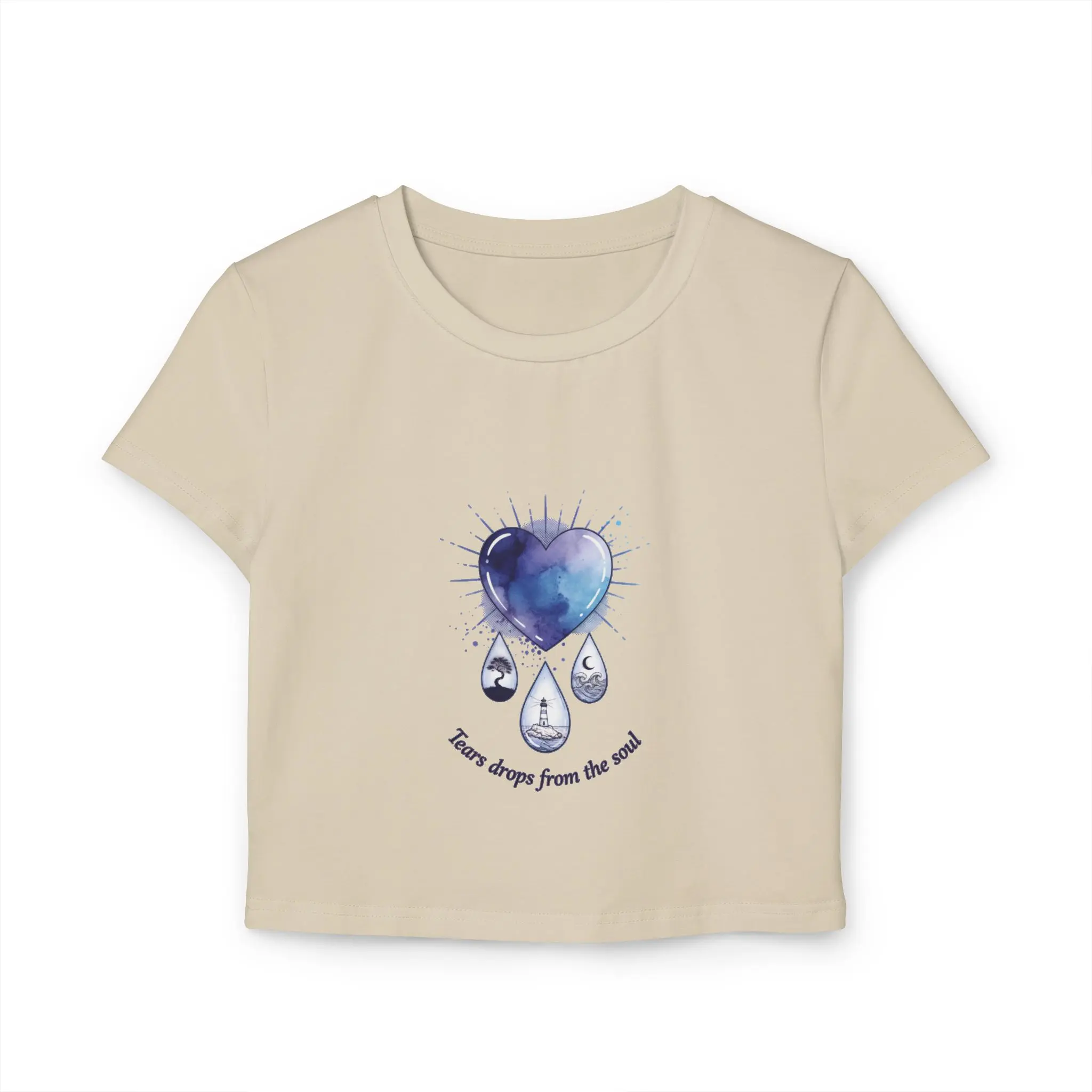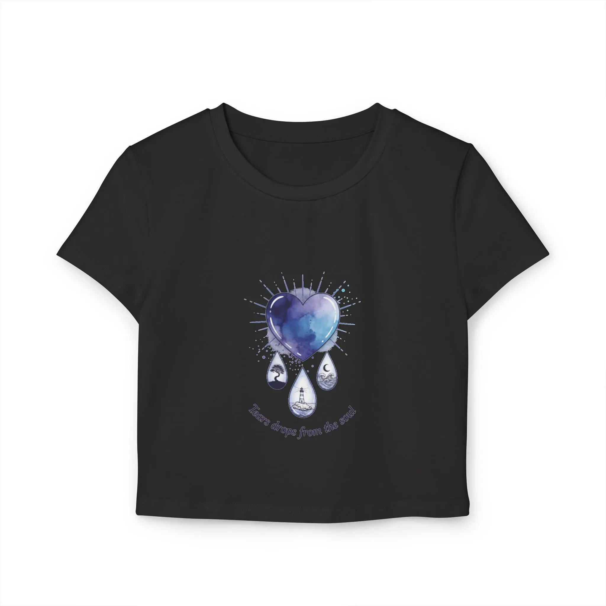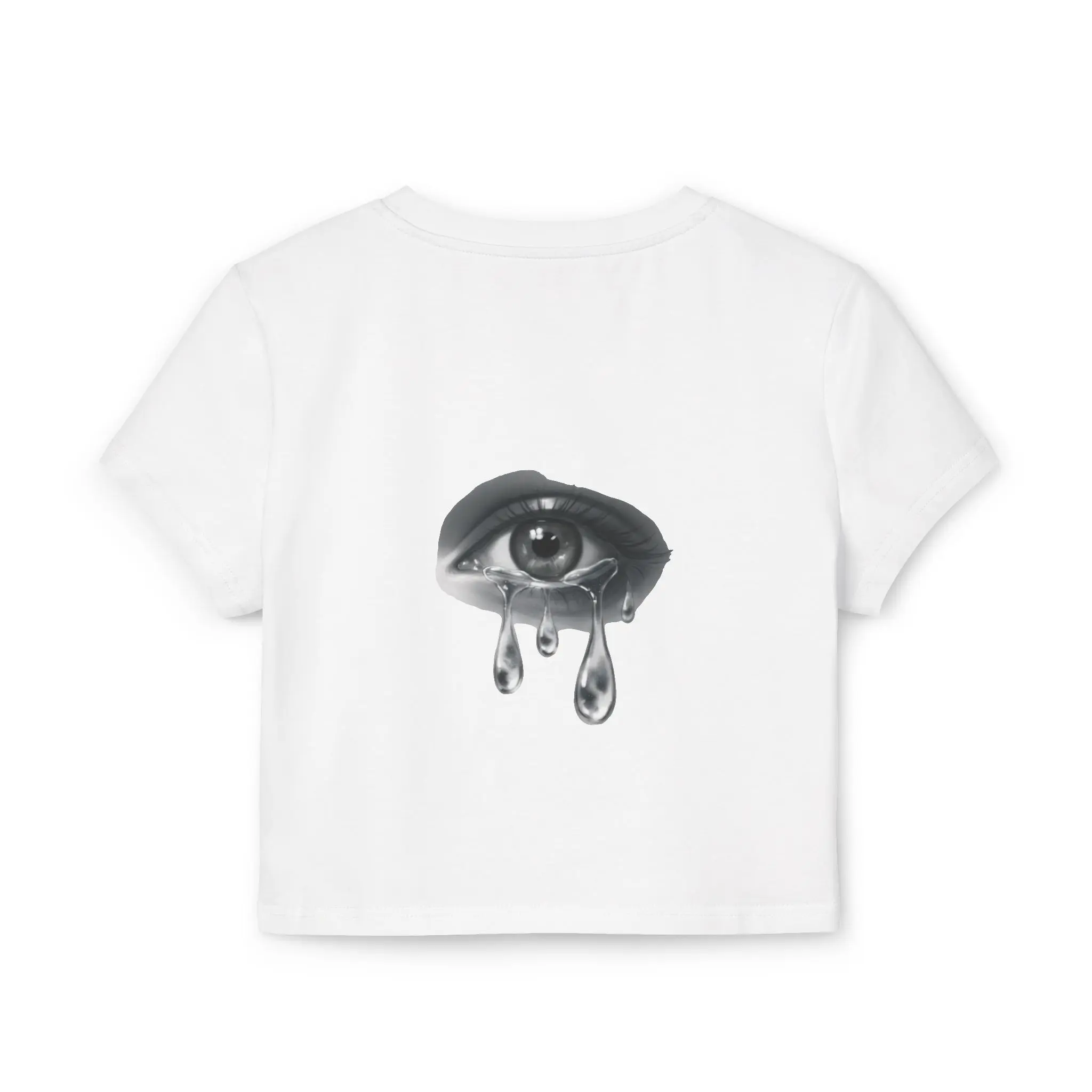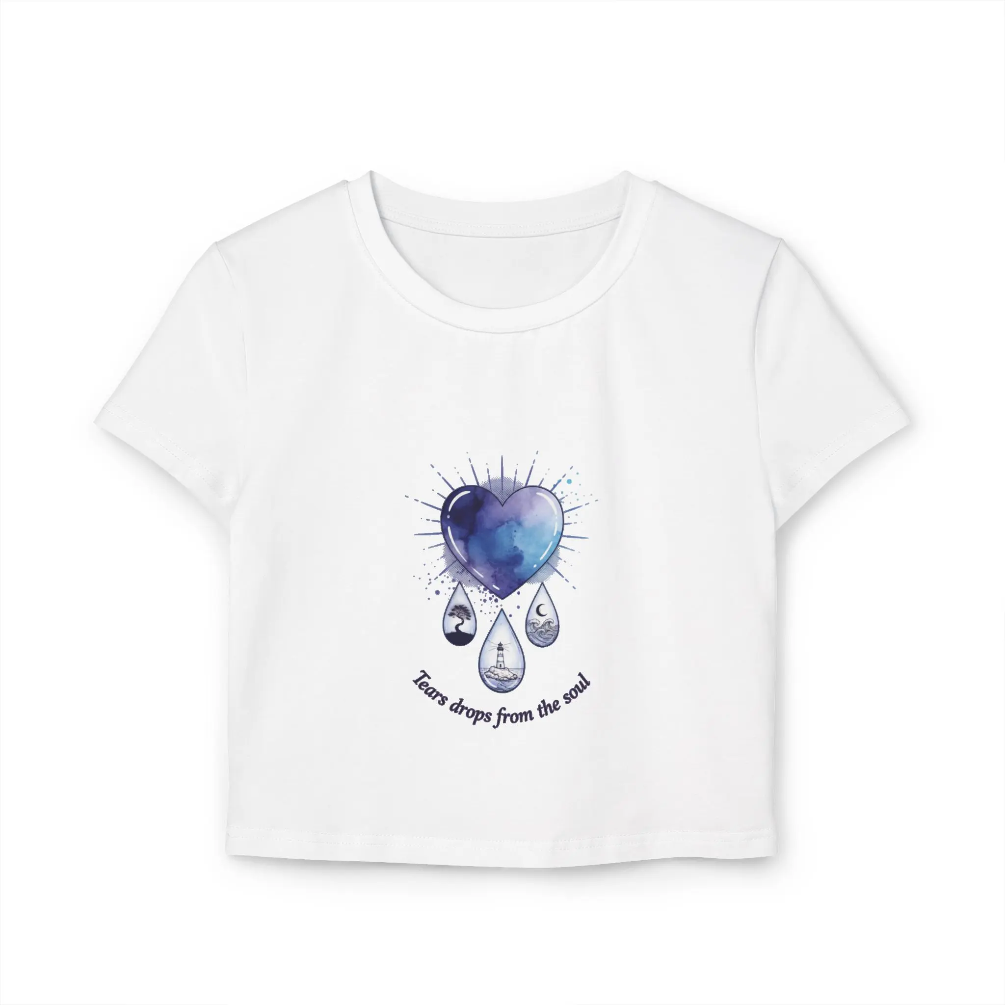 Soft, breathable, and thoughtfully made — this slim-fit baby tee feels like a quiet hug for days when the world needs a little gentleness. The front wears a watercolor heart dissolving into three teardrops, a wash of indigo and violet that reads like a private sky. The back carries a single, finely shaded eye, its polished tears catching light as if they might fall again. Wear it when you want your mood to be visible without saying a word. Layer it under an open cardigan for cool evenings, or pair it with high-waist jeans for city wanderings where small, honest details matter. The organic cotton sits close to the body and moves with you — breathable, midweight, and responsibly grown — while the DTF print keeps the artwork soft to the touch and true to the original strokes. This tee honors quiet feeling and looks like it belongs to someone who notices storms and stars alike. Product features - 100% organic cotton — grown without pesticides or chemical fertilizers - Medium-weight fabric (5.9 oz/yd² | 200 g/m²) for balance between drape and structure - Slim fit cut to flatter the silhouette - Direct-to-Film (DTF) print for detailed, soft-feel artwork reproduction - Tear-away label for comfortable, itch-free wear Care instructions - Machine wash: cold (max 30C or 90F), gentle cycle - Do not bleach - Tumble dry: low heat - Iron, steam or dry: low heat - Do not dryclean