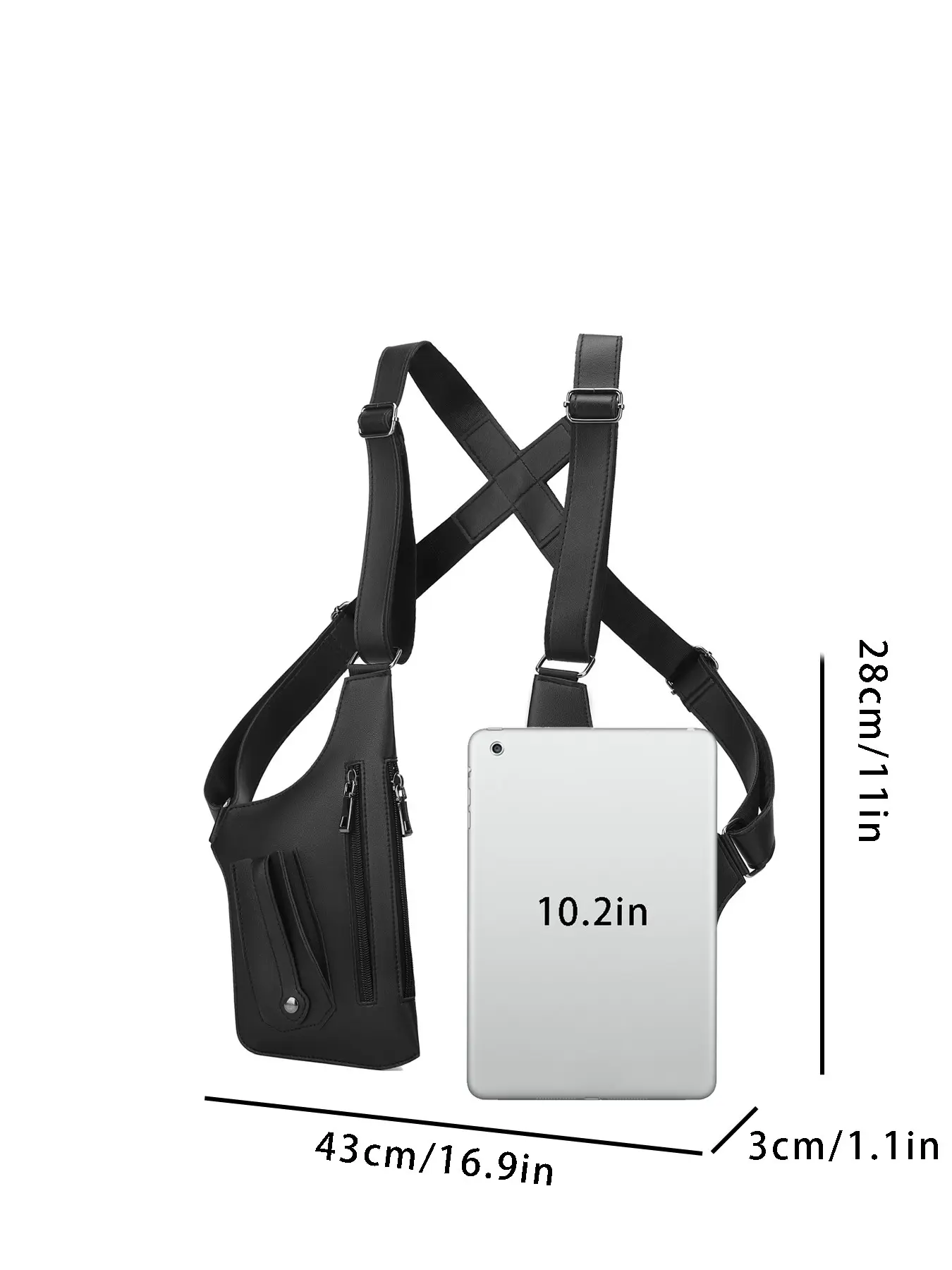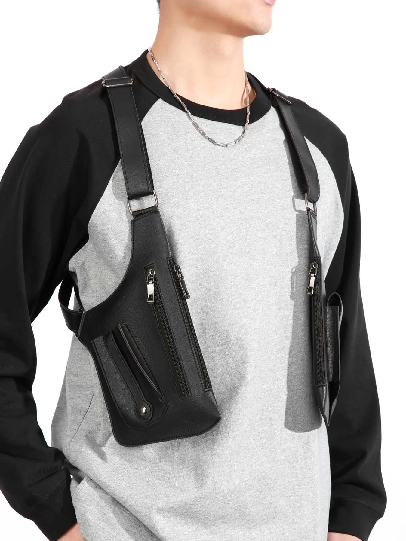 1pc Tactical style PU leather shoulder bag for men, multi pocket adjustable shoulder strap functional shoulder bag, cyberpunk style workwear armpit bag, trendy and cool outfit with vest bag