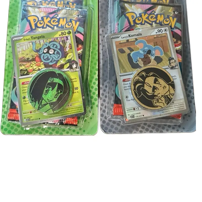 Discover a Trainer's Pokemon at the Gym! The Celadon City Gym, led by Gym Leader Erika, is filled with beautiful greenery and Grass-type Pokemon galore. Visitors to Medali in the Paldea region have the chance to battle Gym Leader Larry and his Normal-type Pokemon. In this collection, you'll find a promo card featuring either Erika's Tangela or Larry's Komala, a metallic coin featuring your chosen Gym Leader, and two booster packs from the special Mega Evolution- Ascended Heroes expansion. Each Pokemon TCG: Mega Evolution- Ascended Heroes Collection- Erika/Larry includes: 1 foil promo card featuring Erika's Tangela or Larry's Komala, 1 Pokemon coin featuring Erika or Larry, 2 Pokemon TCG: Mega Evolution- Ascended Heroes booster packs.